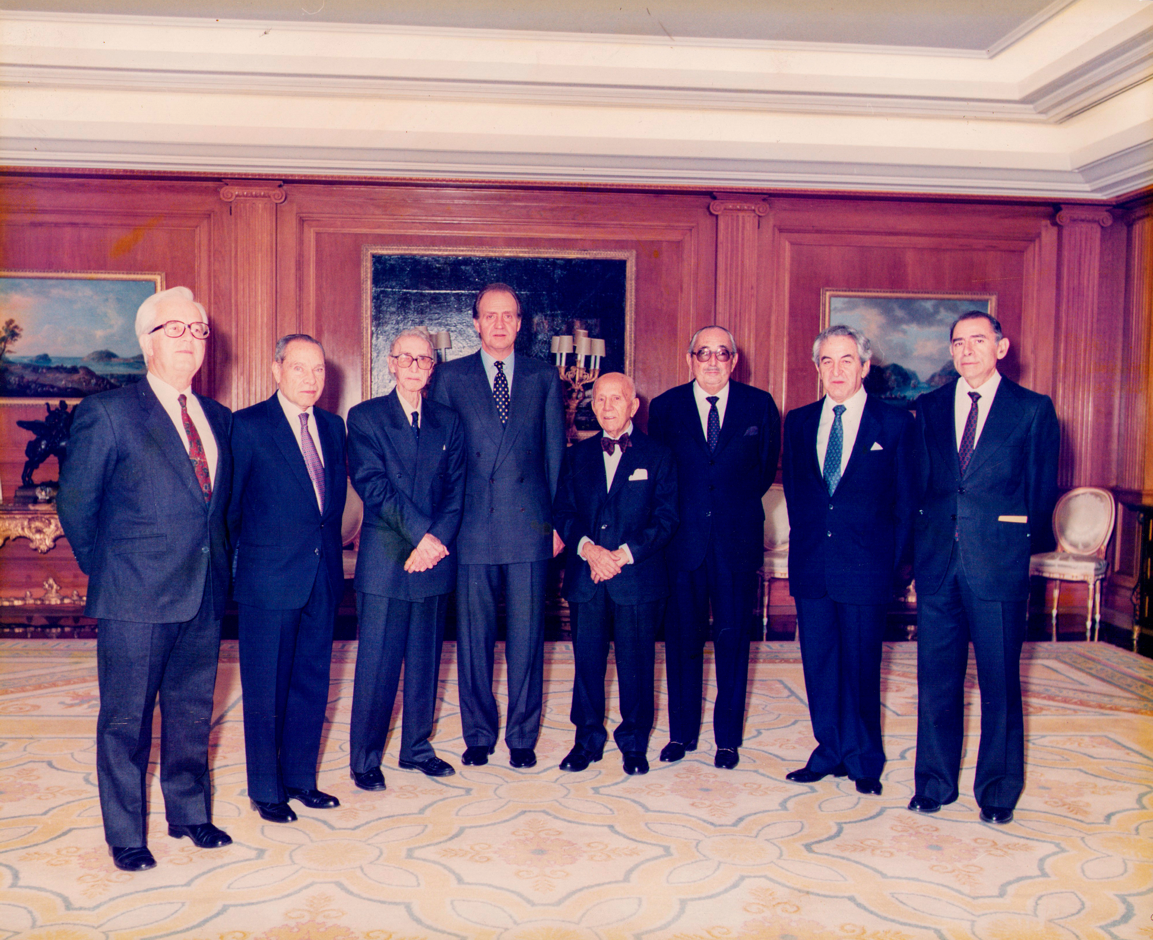 Pedro Sanchez, Manuel Armijo,Luis Bru, S.M. El Rey Juan Carlos I, Mantilla, José Botella, D.Hipólito Durán, D. Espinosa Pérez.