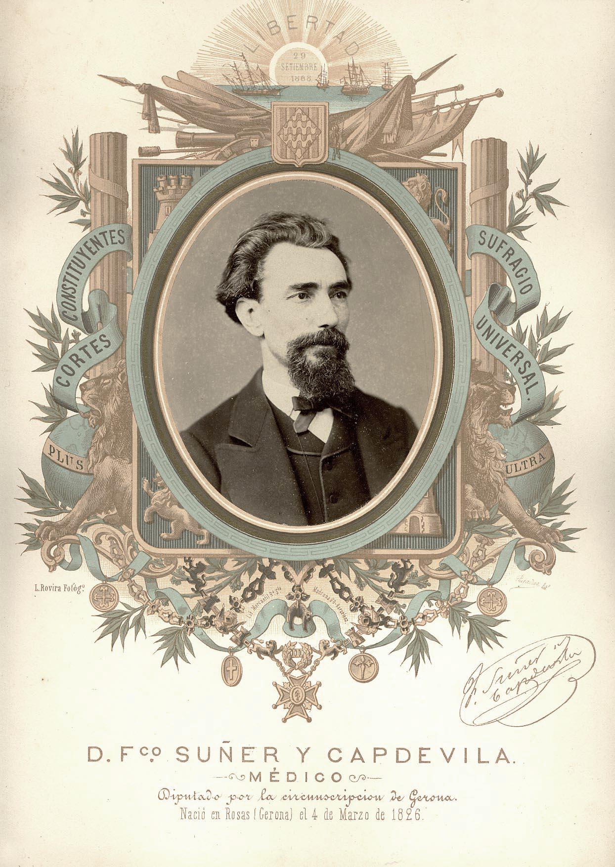 Retrato de Francisco Suñer Capdevilla aparecido en la publicación “Galería de Representantes de la Nación”, conjunto de retratos de los diputados de las Cortes Constituyentes de la Primera República.