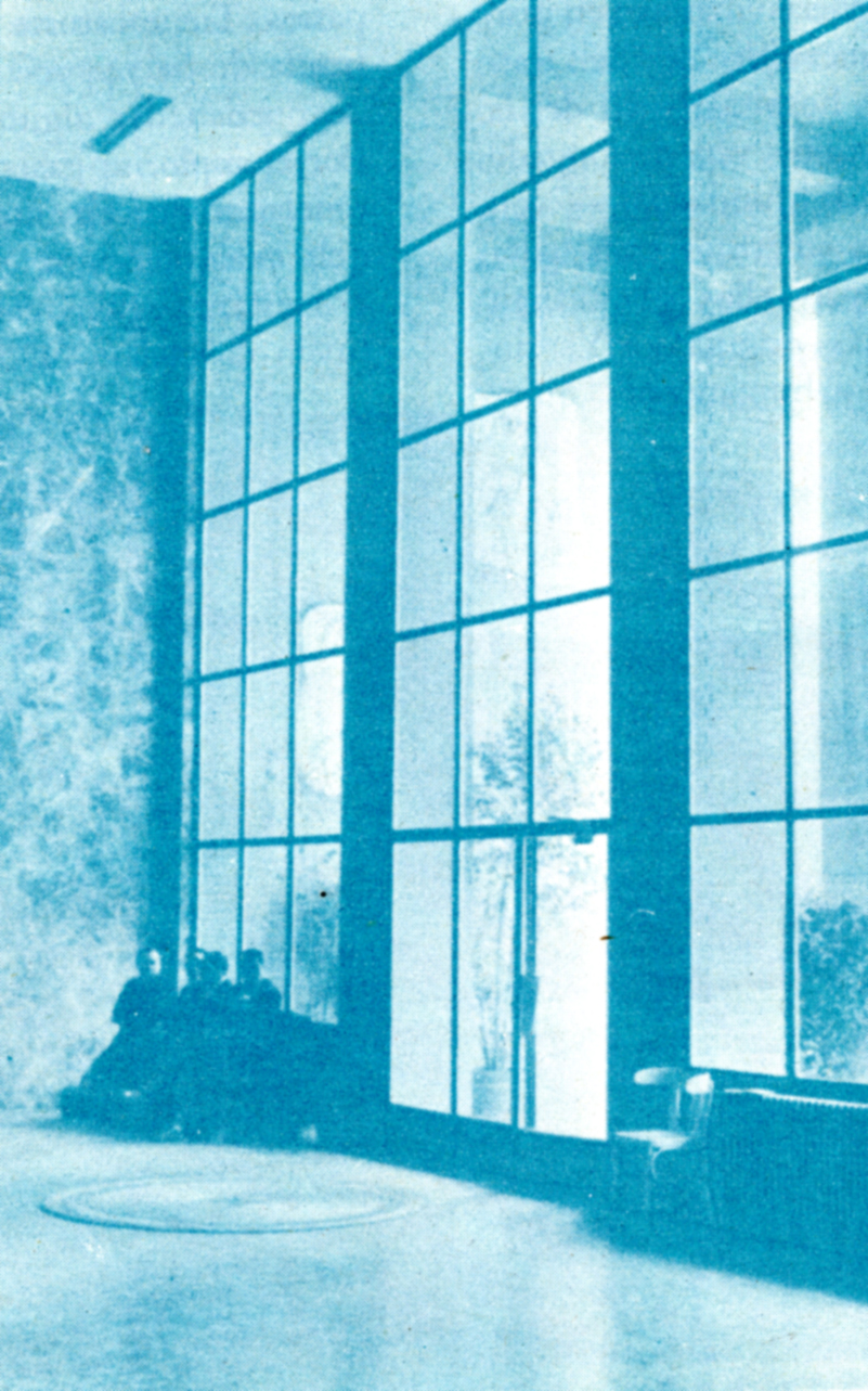 Pórtico de cristales del Gran Hospital de la Beneficencia del Estado en Madrid. Consejo General de Colegios Médicos de España, 101, Junio 1956