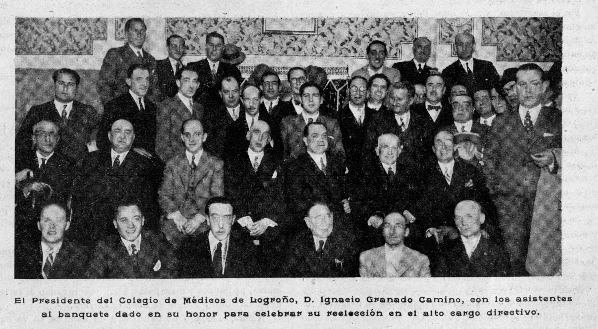 Presidente del Colegio de Médicos de Logroño. Banquete en honor del Dr. Granado Camino al ser reelegido Presidente del Colegio de Médicos de Logroño.