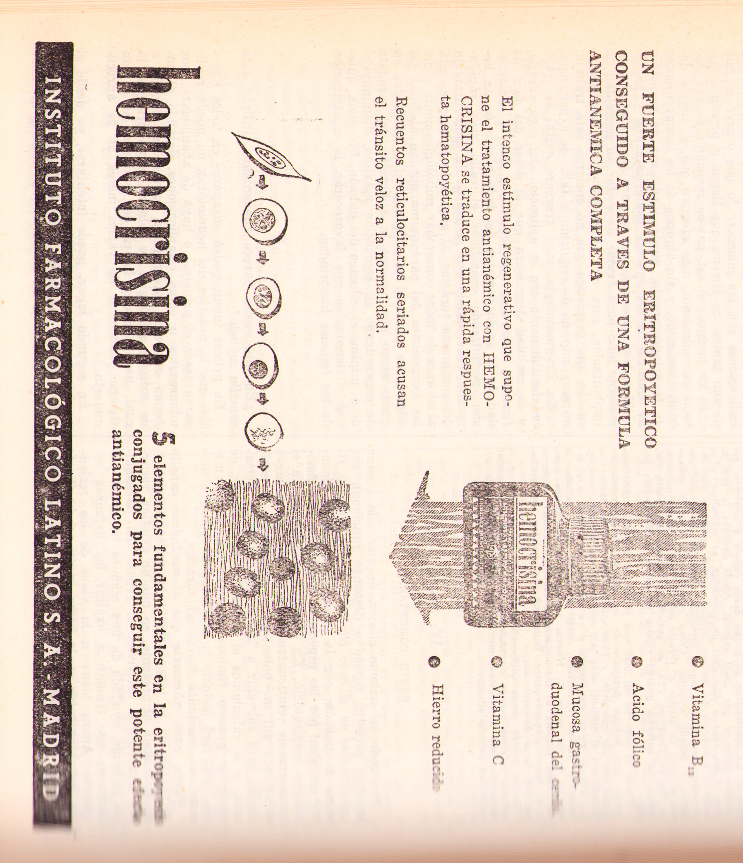Publicidad Hemocrisina, Revista Medicamenta, 1953