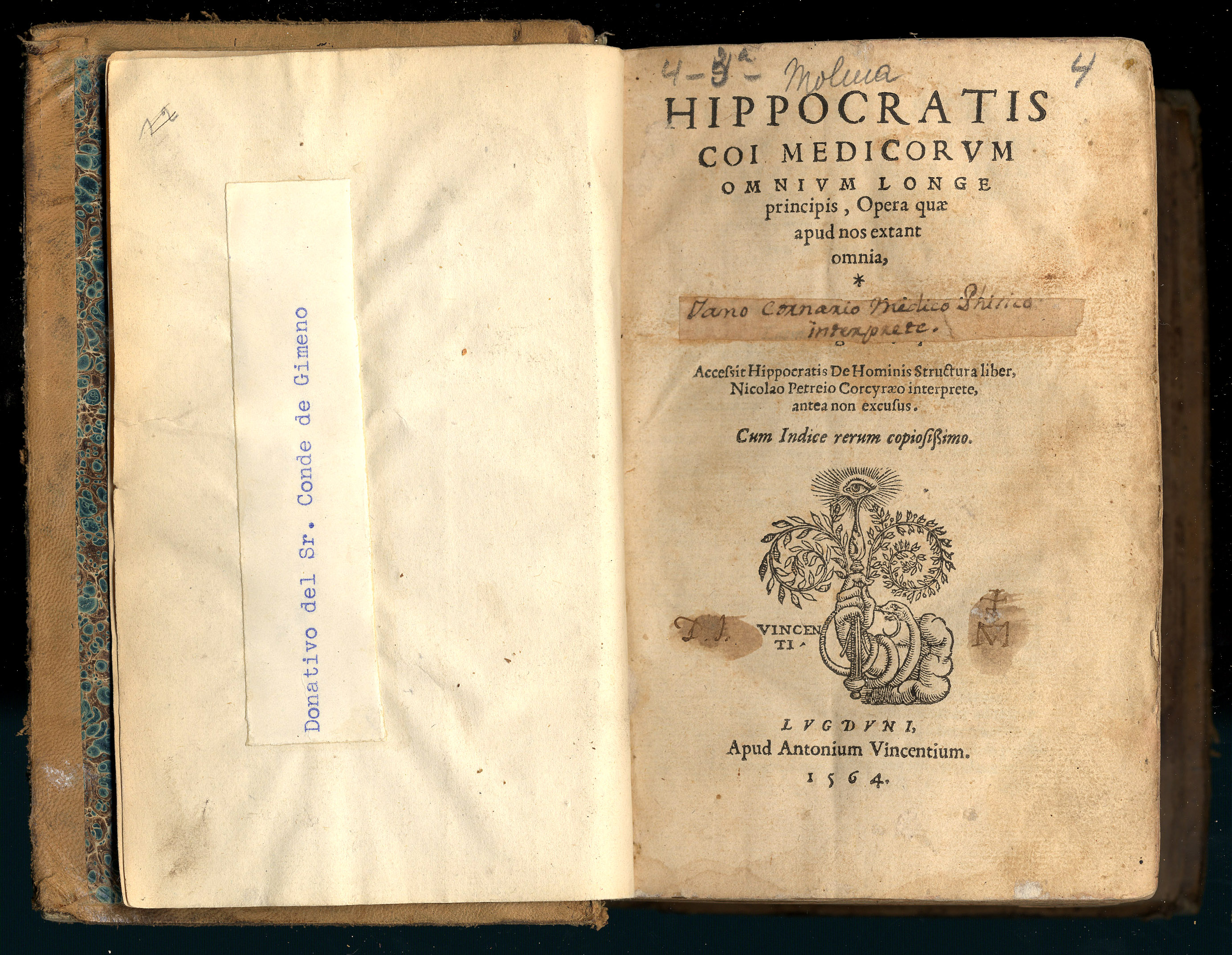 Hipocratis Coi Mediocorum omnium longe principis, Opera quae apud nos extant omnia. Accesit Hippocratis de Hominis Structura liber, Nicolao Petreio Corcyraeo interprete, antea non excusus. Cum indice rerum copiosissimo.