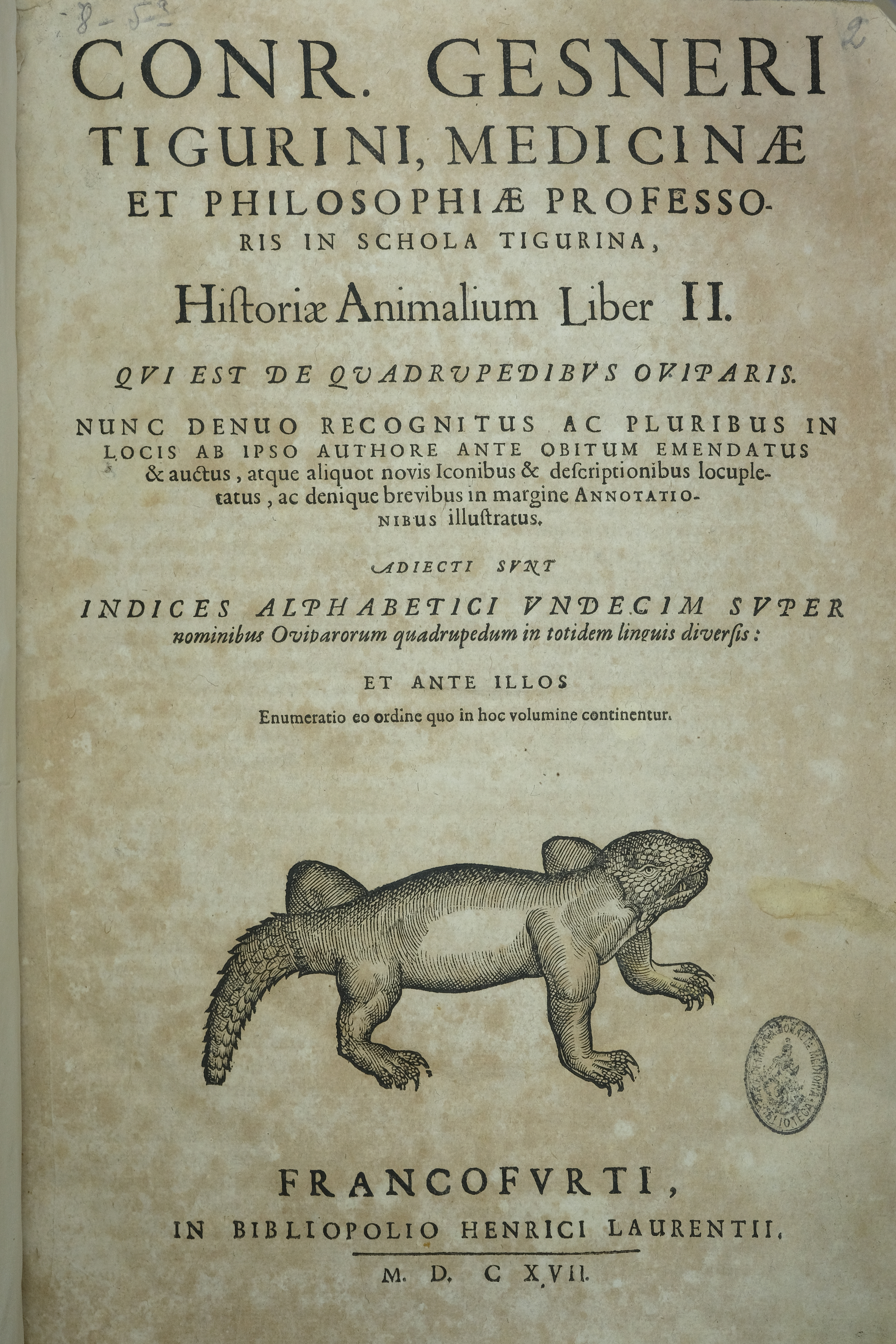 Historiæ animalium lib.II “De Quadrupedibus Oviuiparis”