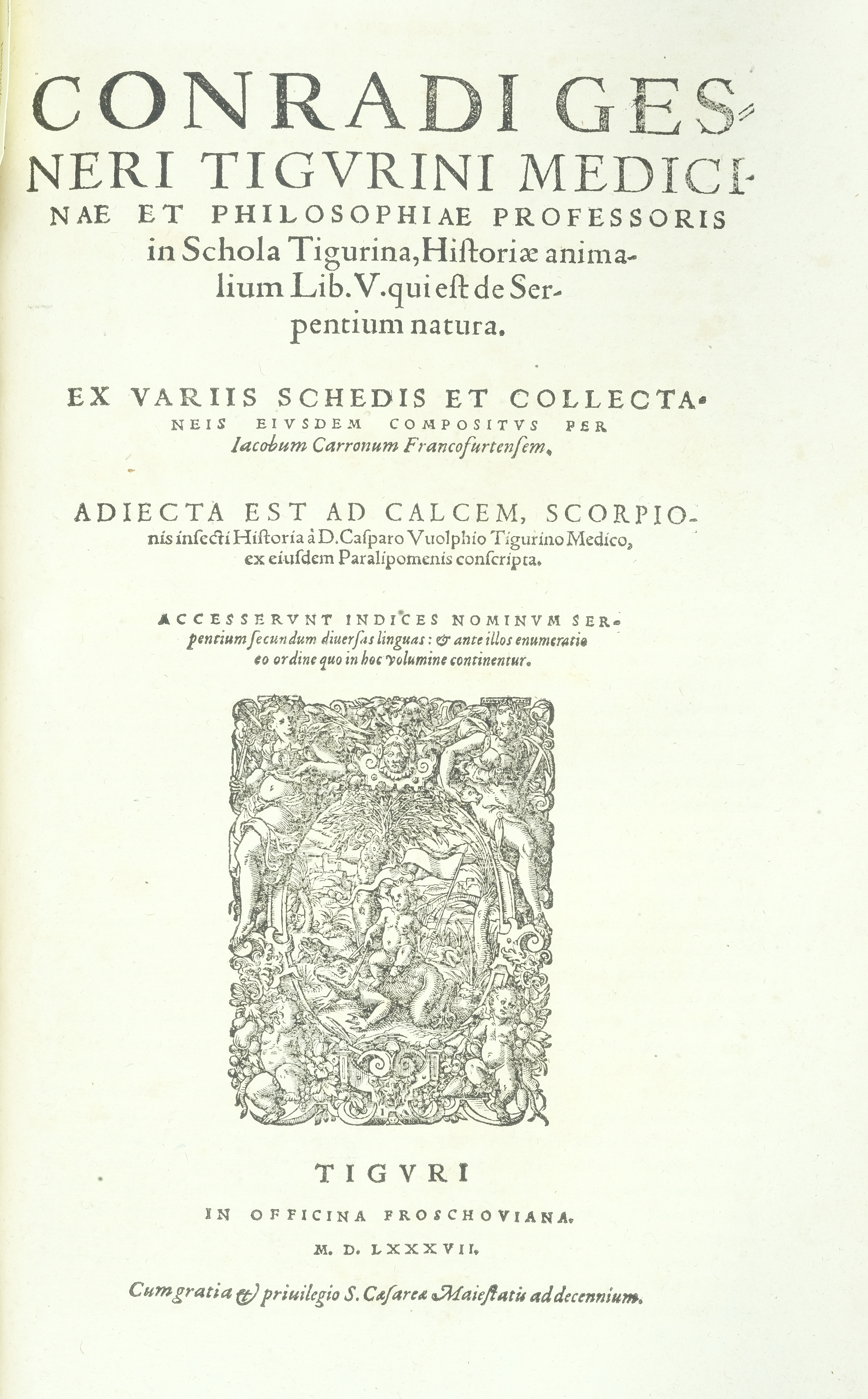 Conradi gesneri tigvrini medicinae et philosophiae professoris in schola tigurina, historiæ animalium lib.V.Quieft de ser pentium natura, ex variis schedis et collecta.