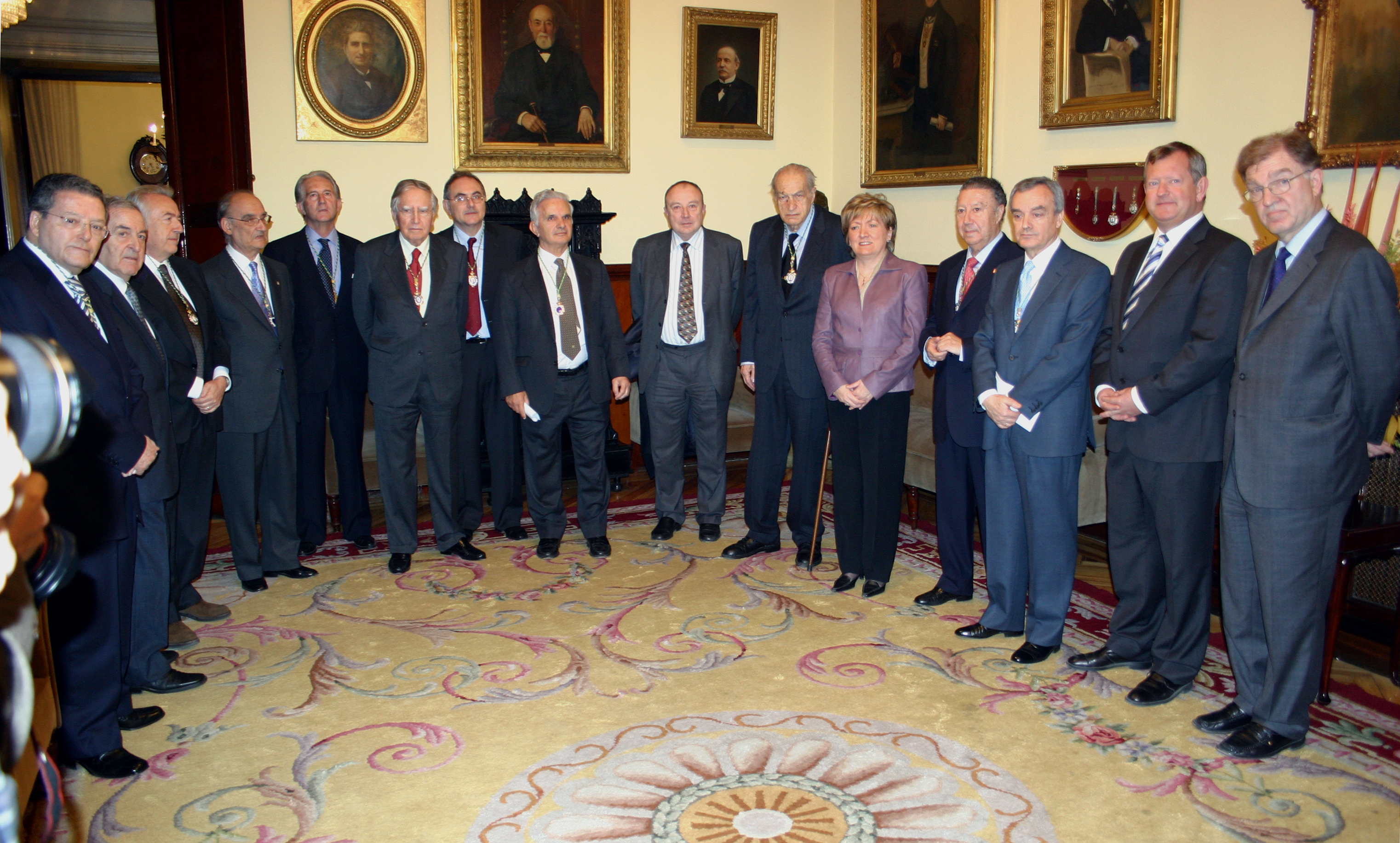 De izq. a der: Profs. Salustiano del Campo Urbano, Hipólito Durán Sacristán, ?, Enrique Casado de Frías, Francisco Vázquez de Quevedo, Fernando Reinoso Suárez, Antonio Campos Muñoz, ?, Amador Schüller Pérez, María Jesús San Segundo (Ministra de Educación), Juan Jiménez Collado, Manuel Díaz-Rubio García, Anders Rönquist (Embajador de Suecia) y Sten Grillner