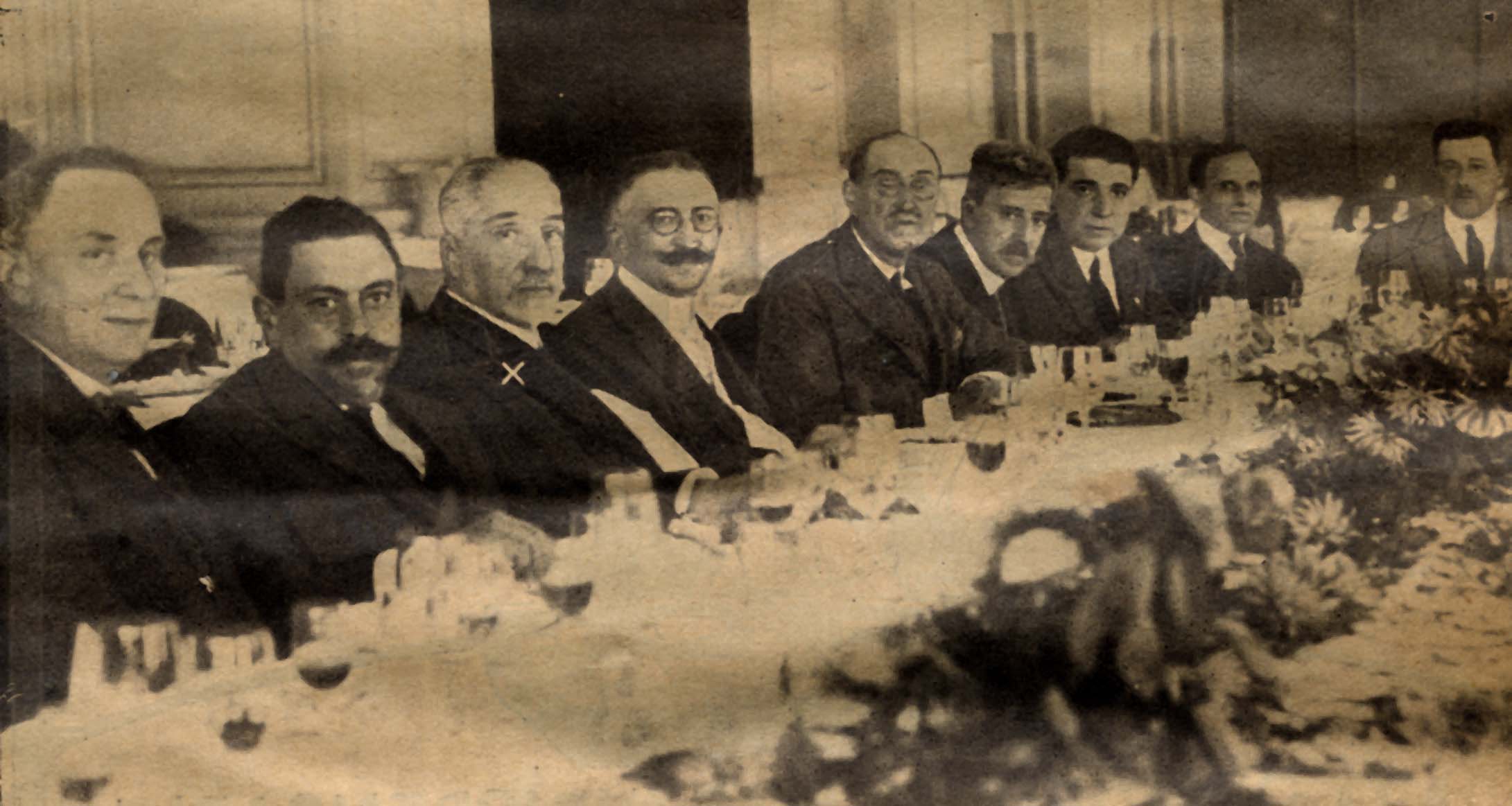 Homenaje del País Vasco al dr. Angel Pulido (x) celebrado en el Kursaal en Agosto de 1924. Le acompañan los Dres. Gurruchaga, Rozanés, Irigoyen, Ucelayeta, Altuna y Damborenea.