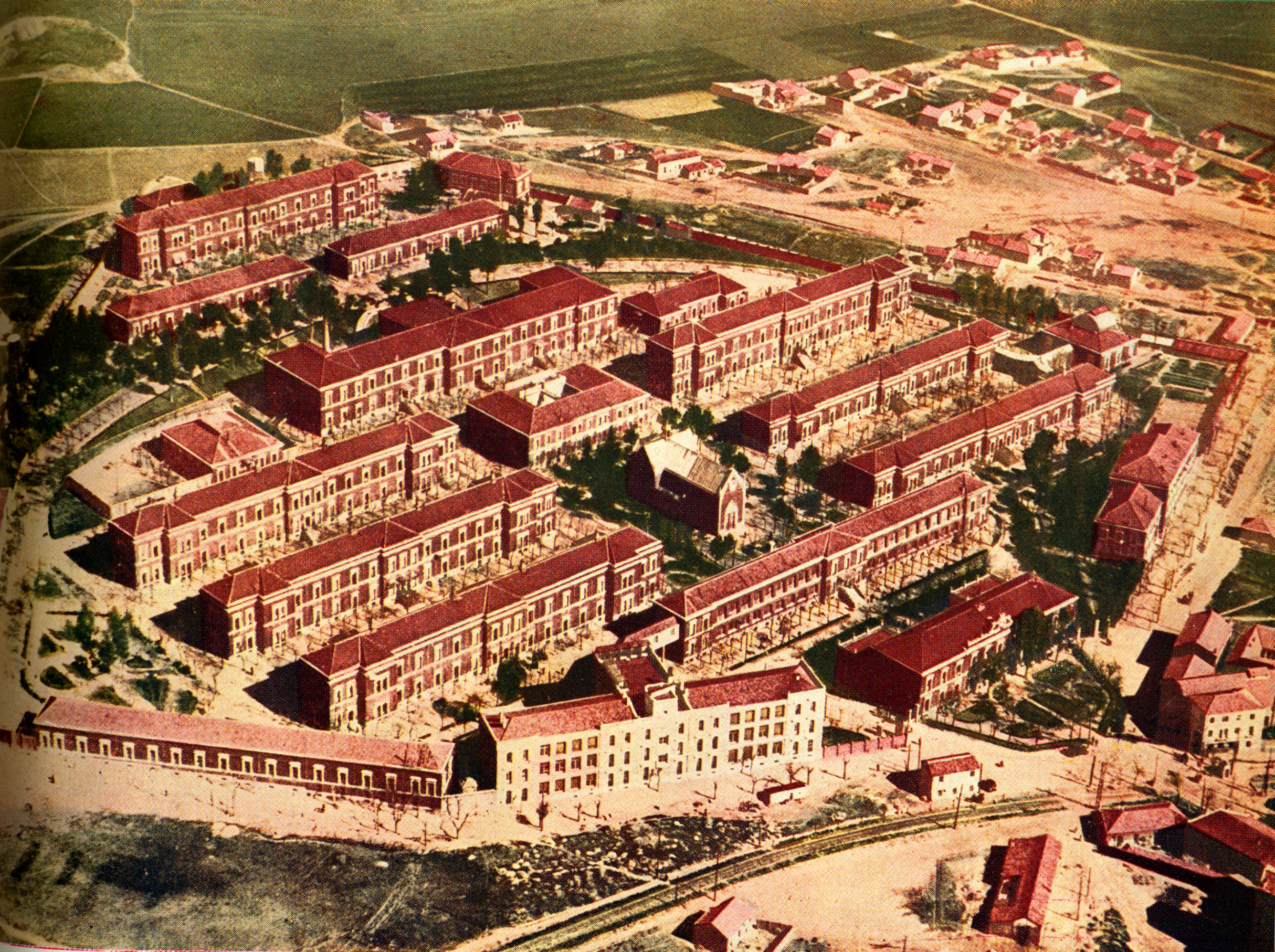 Vista aérea del conjunto hospitalario militar “Gómez Ulla”, en Madrid. Consejo General de Colegios Médicos de España, 13, Octubre 1947
