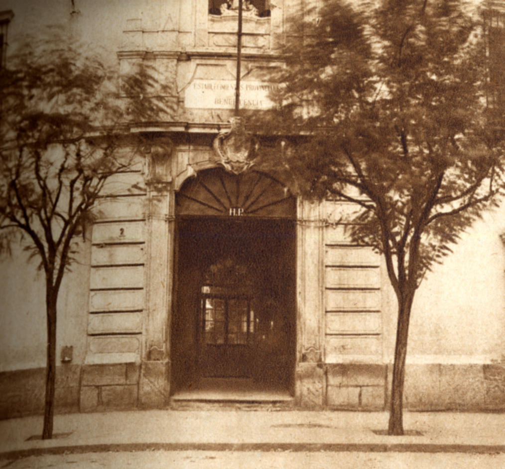 Puerta principal del Hospital provincial de Badajoz. Consejo General de Colegios Médicos de España, 12, Julio 1947