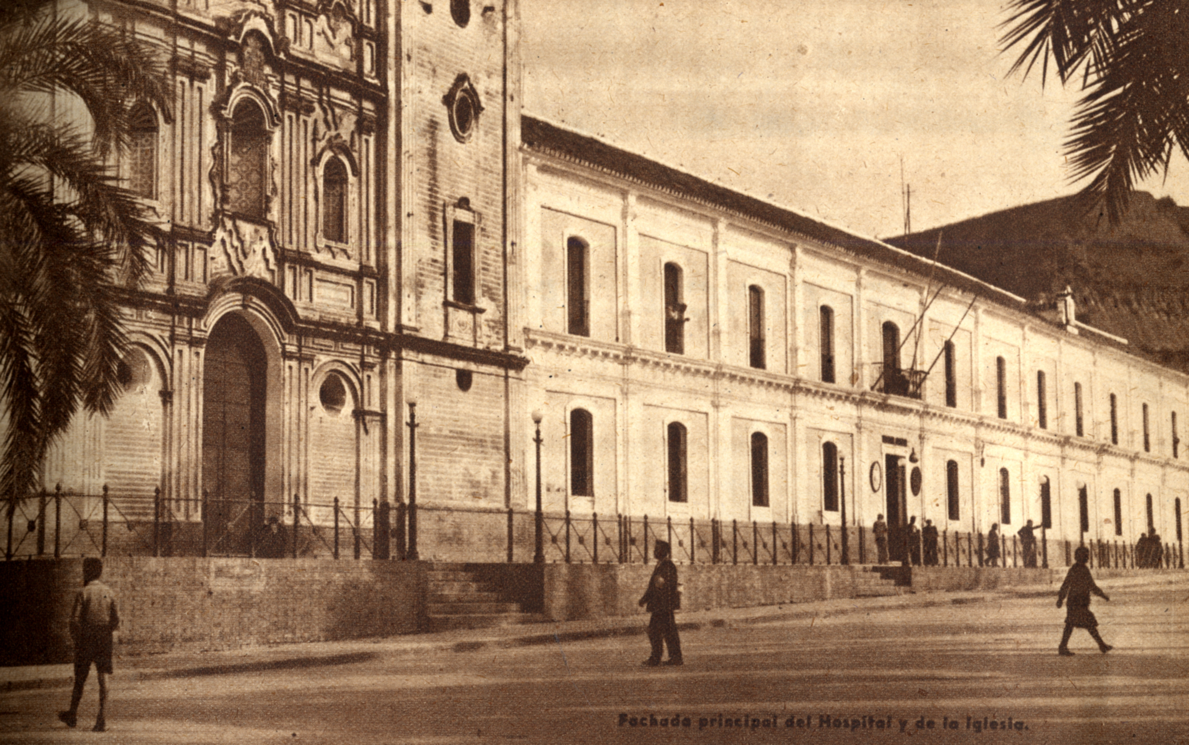 Fachada principal del Hospital Provincial de la Beneficencia de Huelva y de la Iglesia. Consejo General de Colegios Médicos de España, 20, Mayo 1948