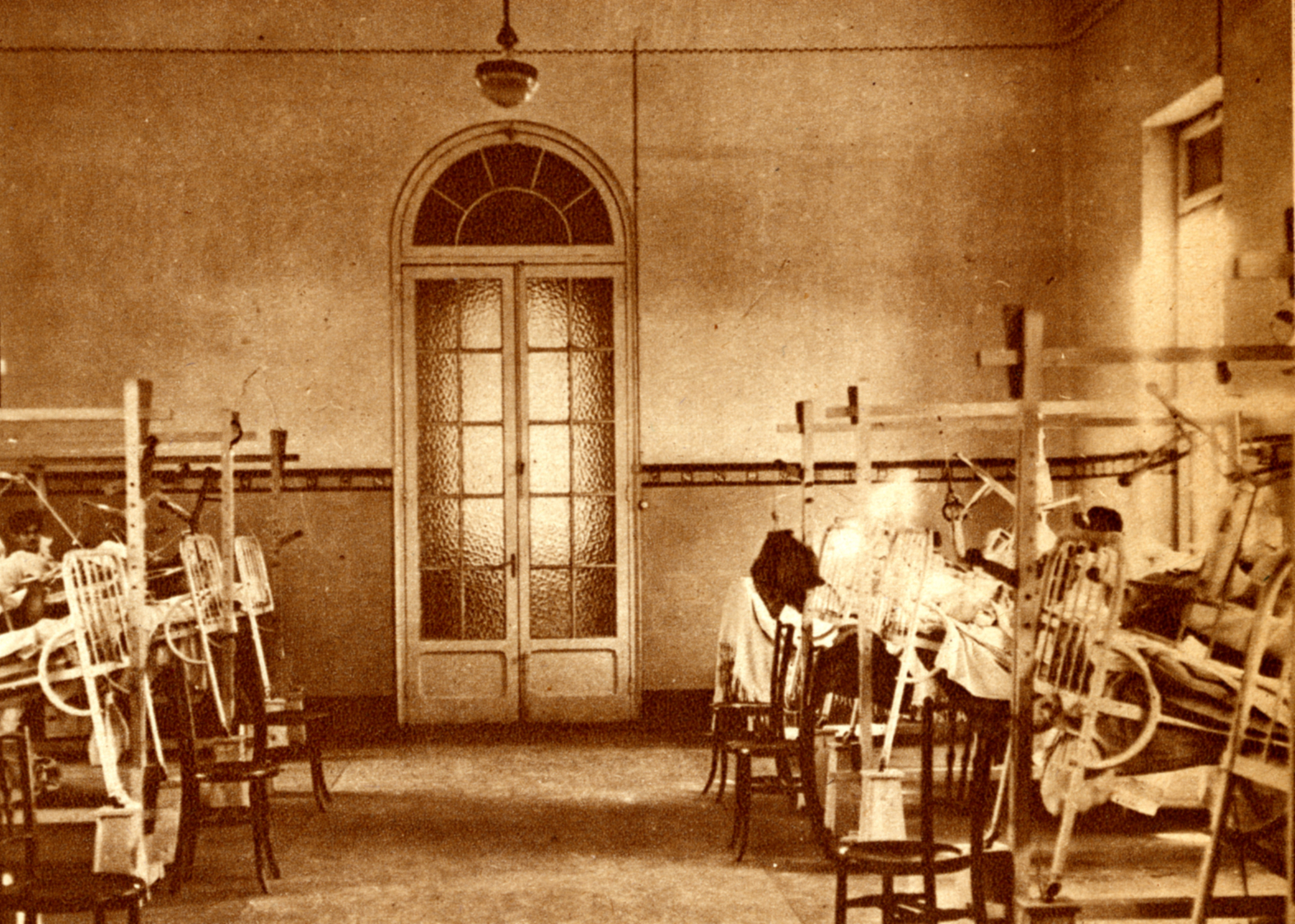 Vista parcial de una sala de Cirugía (Traumatología) del Hospital Provincial de Santa María, de la Beneficencia de Lérida. Consejo General de Colegios Médicos de España, 21, Junio 1948