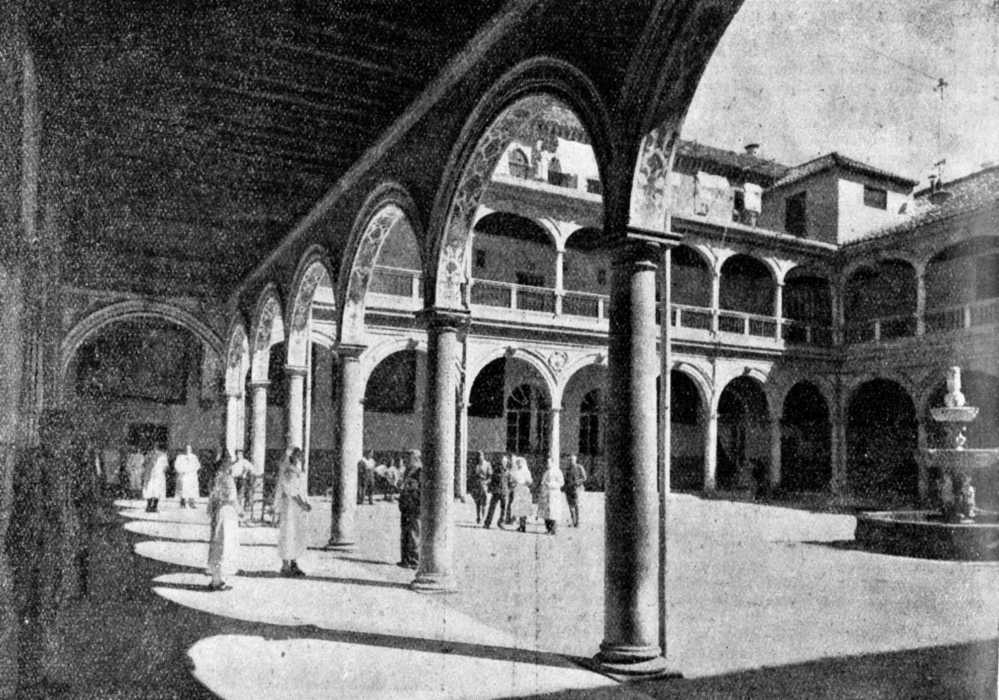 El patio del Hospital San Juan de Dios, casa solariega de la Escuela médica granadina. Consejo General Colegios Médicos España, apr. 1950, p. 26