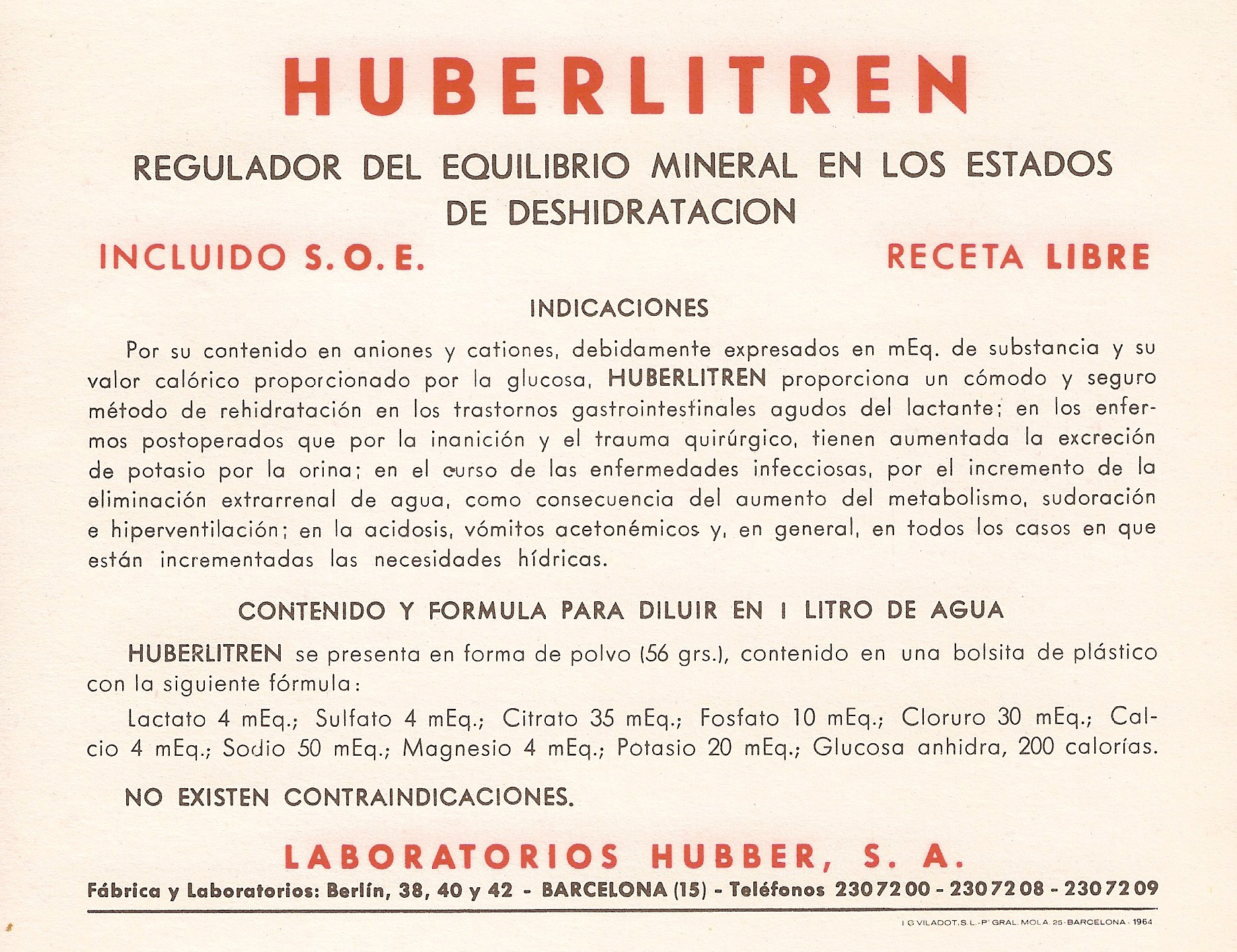 Huberlitren. Encarte en Archivos de la Facultad de Medicina de Madrid, 1964.