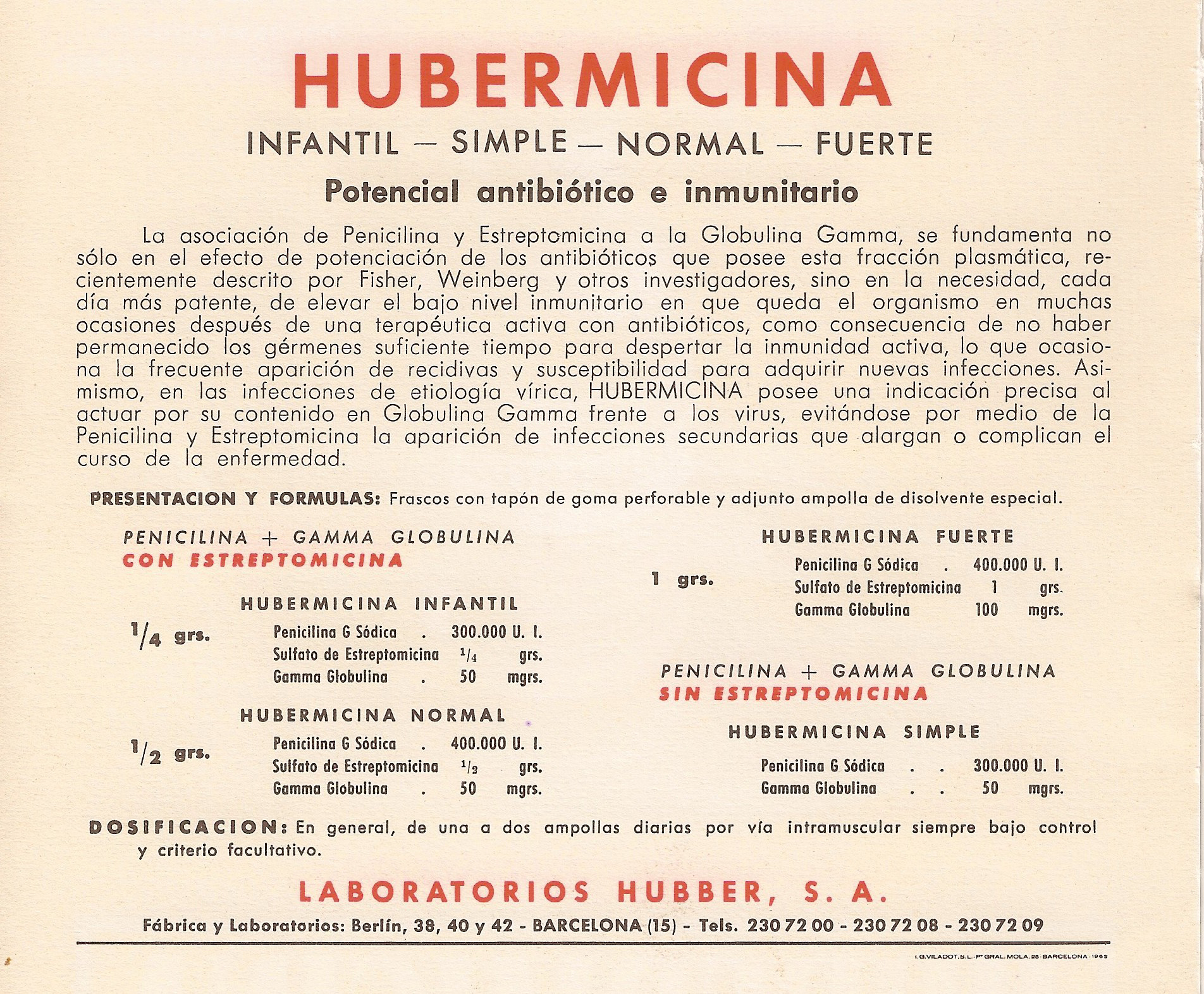 Hubermicina. Archivos de la Facultad de Medicina de Madrid, 1965