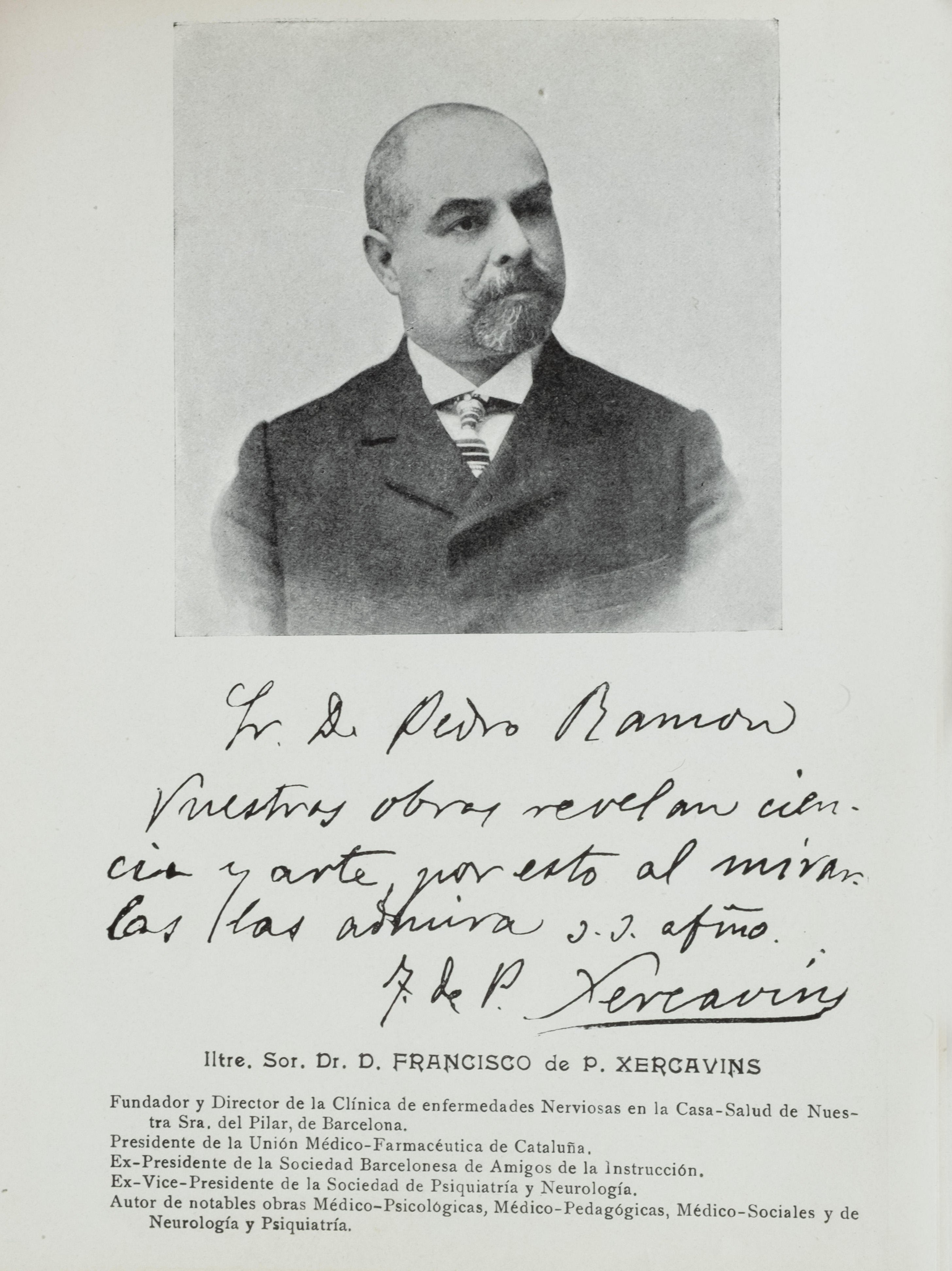 Fundador y Director de la Clínica de enfermedades Nerviosas en la Casa-Salud de Nuestra Sra. del Pilar, de Barcelona. Presidente de la Unión Médico-Farmacéutica de Cataluña. Ex-Presidente de la Sociedad Barcelonesa de Amigos de la instrucción, Ex-Vice-Presidente de la Sociedad de Psiquiatría y Neurología. Autor de notables obras Médico-Psicologicas, Médico-Pedagógicas, Médico-Sociales y deNeurología y Psiquiatría.