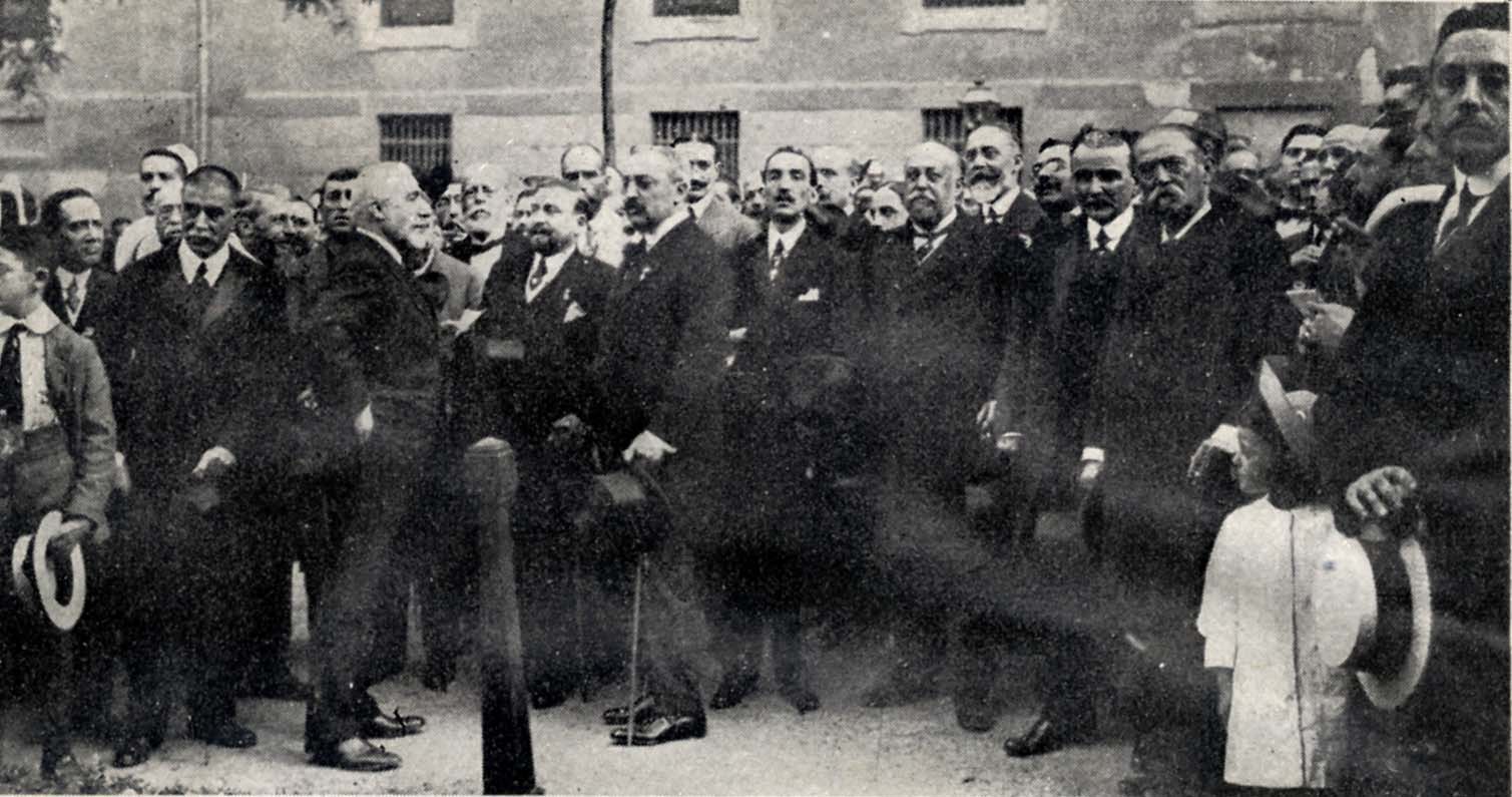 El dr. Pulido pronunciando su discurso durante el acto de inauguración del monumento al Dr. Esquerdo, en la calle Santa Isabel de Madrid, en la plaza frente al Hospital Provincial.