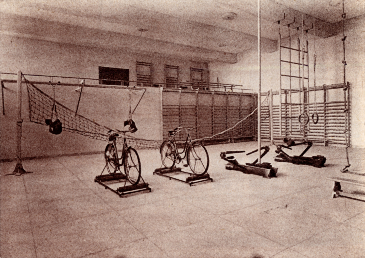 Sala de reeducación del Instituto de Medicina, Higiene y Seguridad del Trabajo, en la Ciudad Universitaria de Madrid. Consejo General de Colegios Médicos de España, 63, Octubre 1952