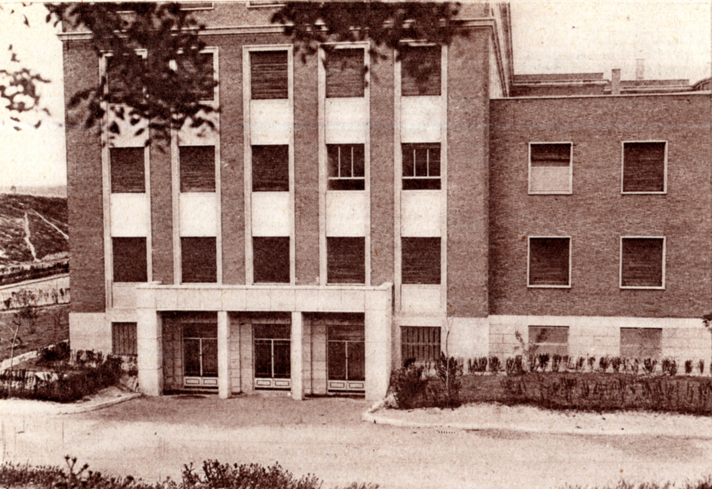 Entrada a los servicios de consulta del Instituto de Medicina, Higiene y Seguridad del Trabajo, en la Ciudad Universitaria de Madrid. Consejo General de Colegios Médicos de España, 63, Octubre 1952
