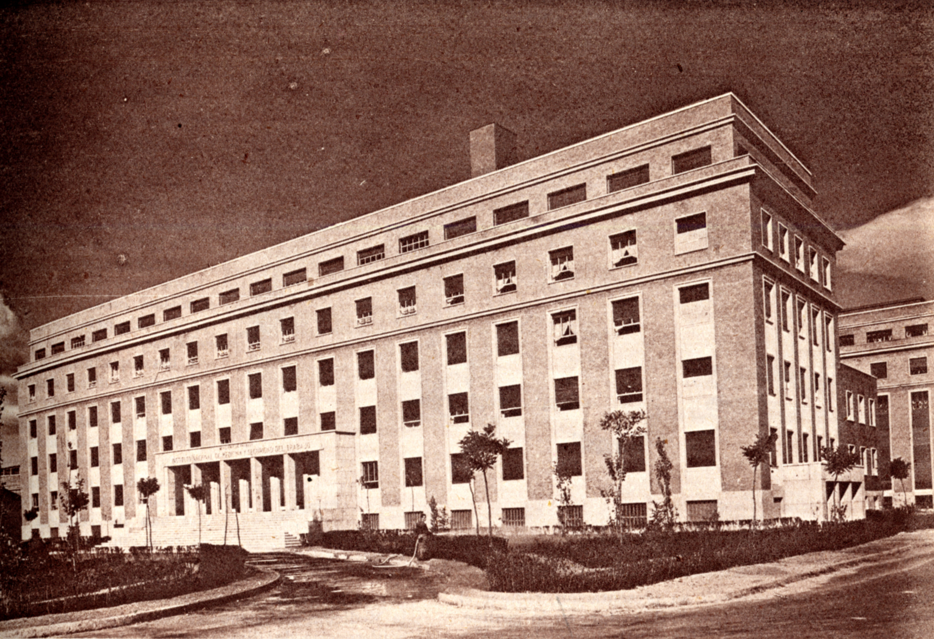 Aspecto de conjunto del edificio del Instituto de Medicina, Higiene y Seguridad del Trabajo, en la Ciudad Universitaria de Madrid. Consejo General de Colegios Médicos de España, 63, Octubre 1952