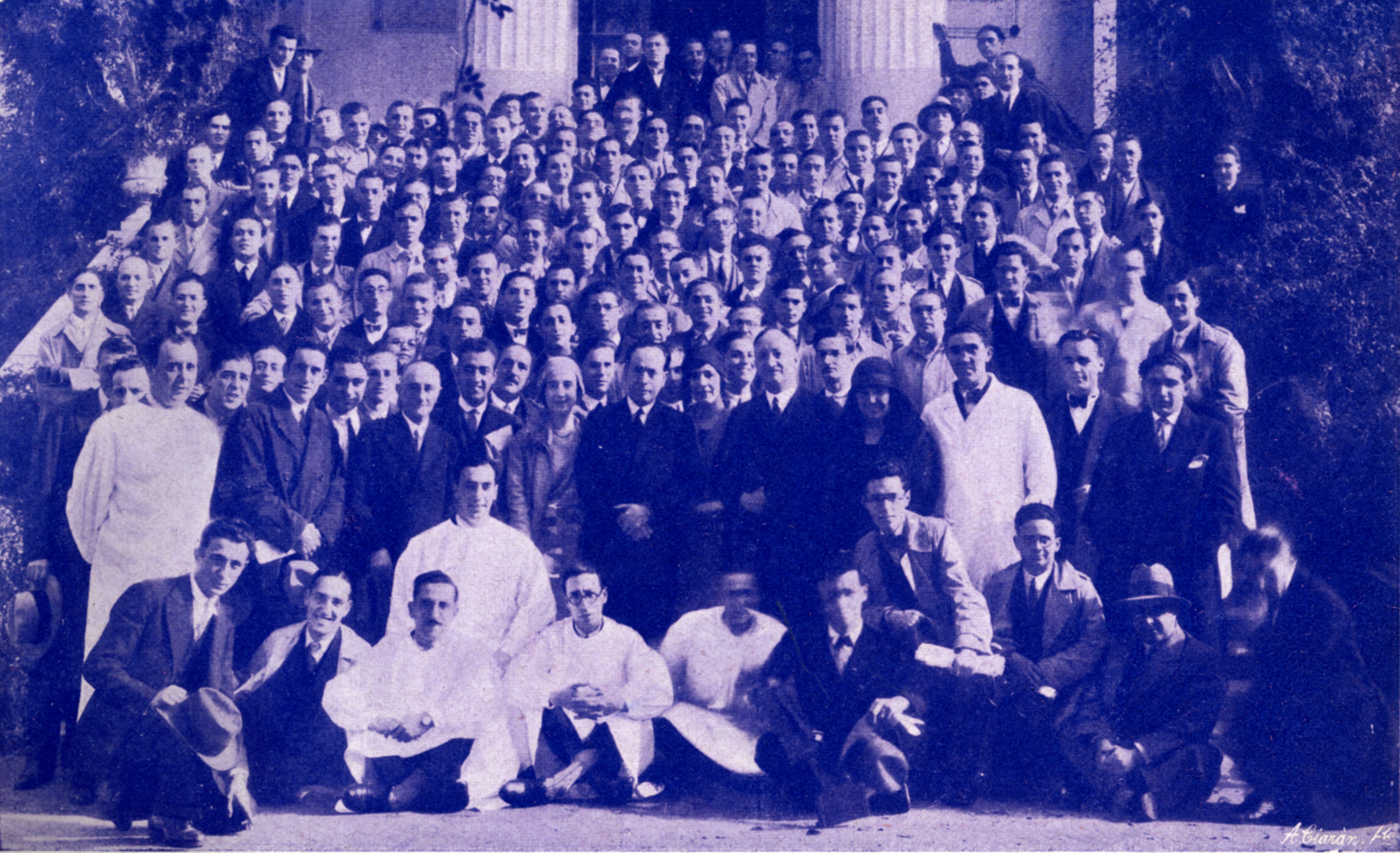 Los alumnos de Medicina Legal visitan el Instituto de Reeducación Profesional de Madrid acompañados por su profesor, el Doctor Piga. El director del Instituto, doctor Oller, muestra la obra, secundado por sus colaboradores. Gaceta Médica Española, 40, Enero 1930