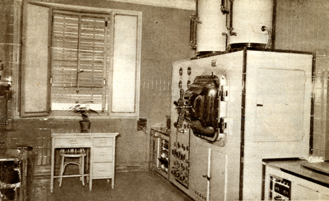 Sala de esterilización del Instituto Nacional del Cáncer. Consejo General de Colegios Médicos de España, 69, Abril 1953