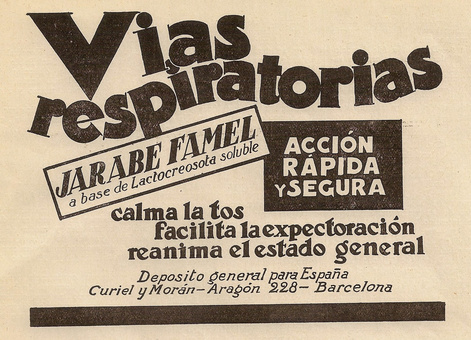 Jarabe Famel. Facilita la expectoración. Curiel y Morán. Barcelona. La Medicina Ibera, 24 de Enero de 1931.