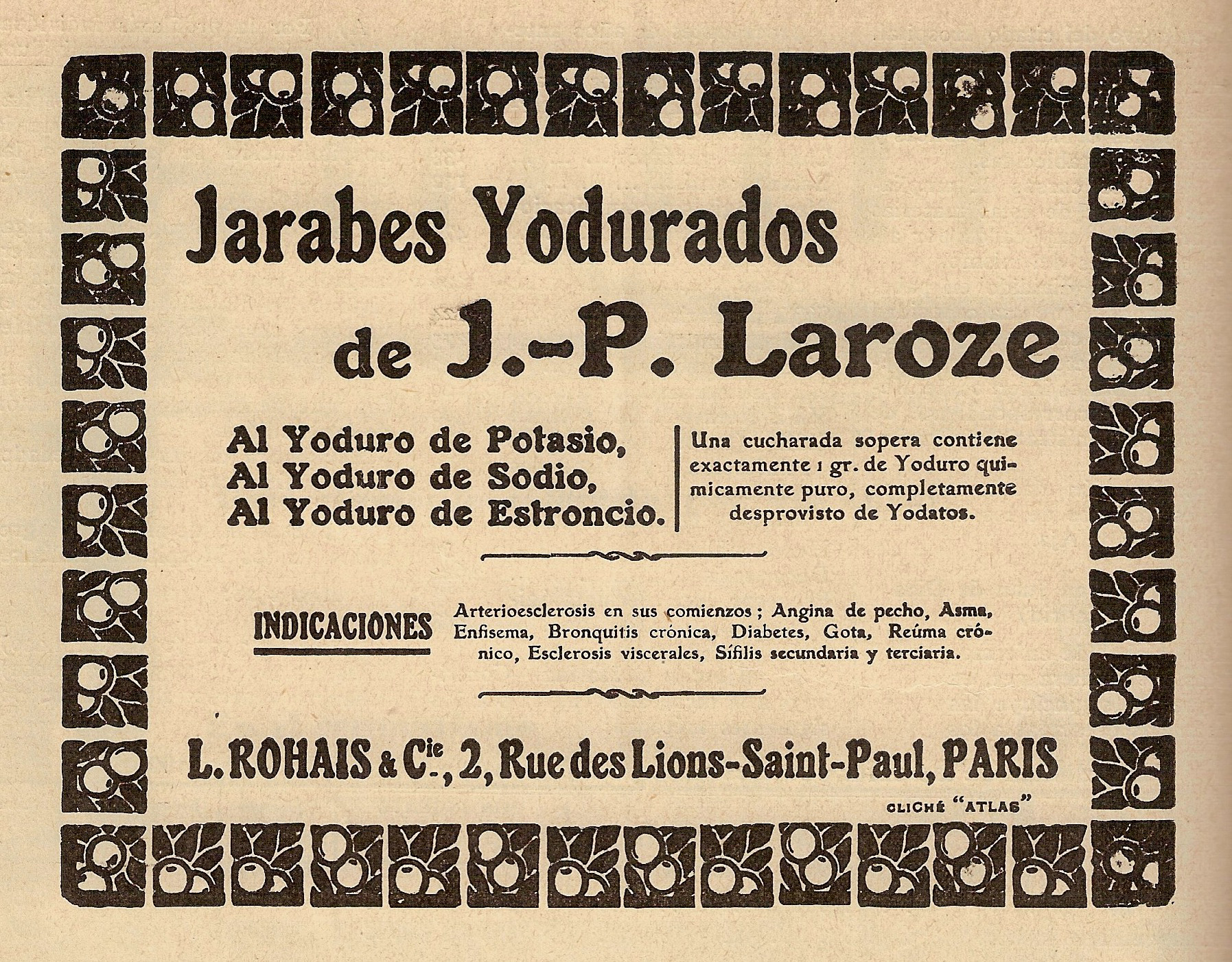 Jarabes Yorudados. Yoduro de Potasio, Yoduro de Sodio, Yoduro de Estroncio. L.Rohais. París. La Medicina Íbera, 11 de abril de 1931.