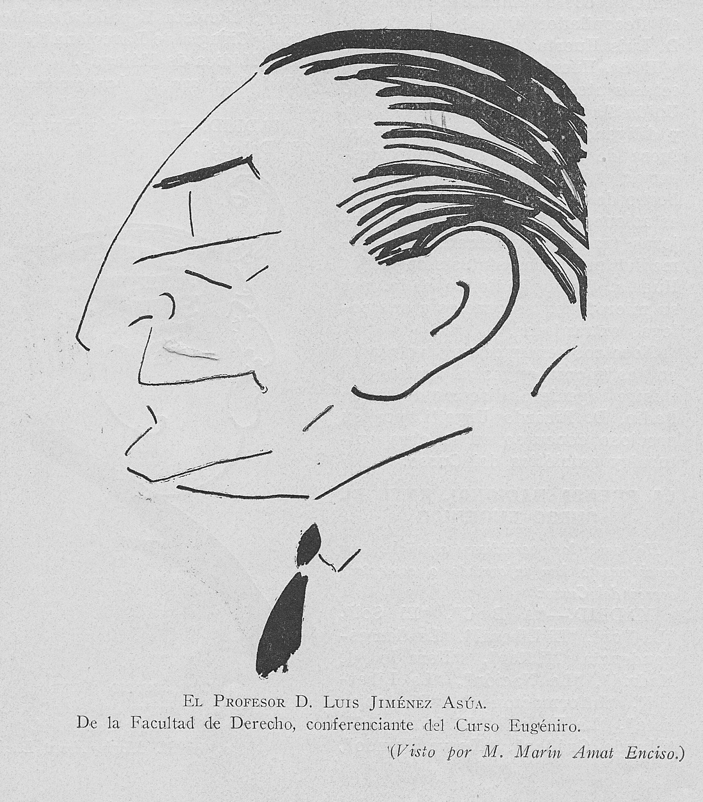 Jiménez de Asúa, Luis. Caricatura de M.Marín Amat Enciso. Gaceta Médica Española, marzo, 1928