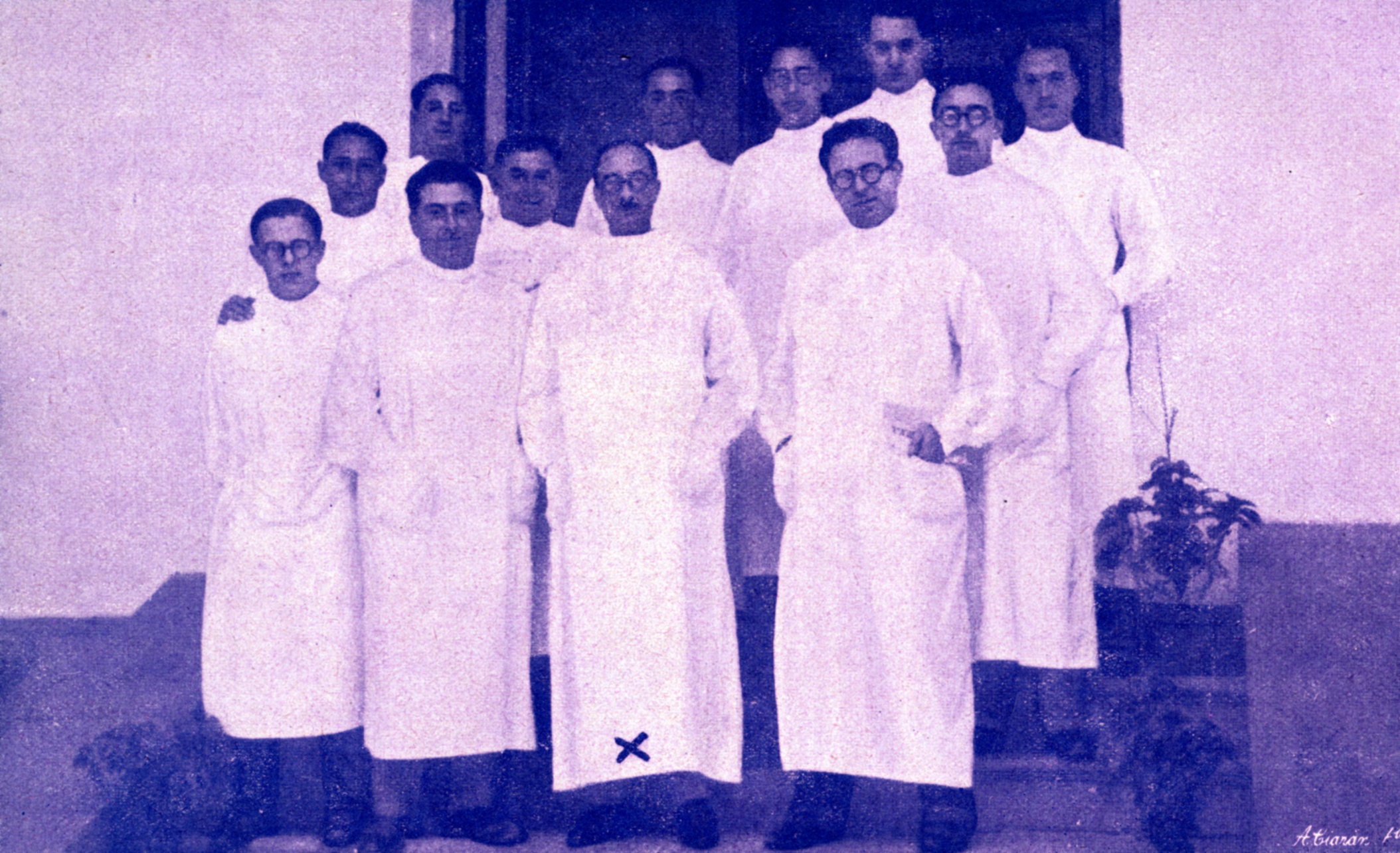 El Dr. Eizaguirre (x) con alumnos que han prestado su colaboración en el curso teórico-práctico sobre tuberculosis. Gaceta Médica Española, 38, Nov. 1929