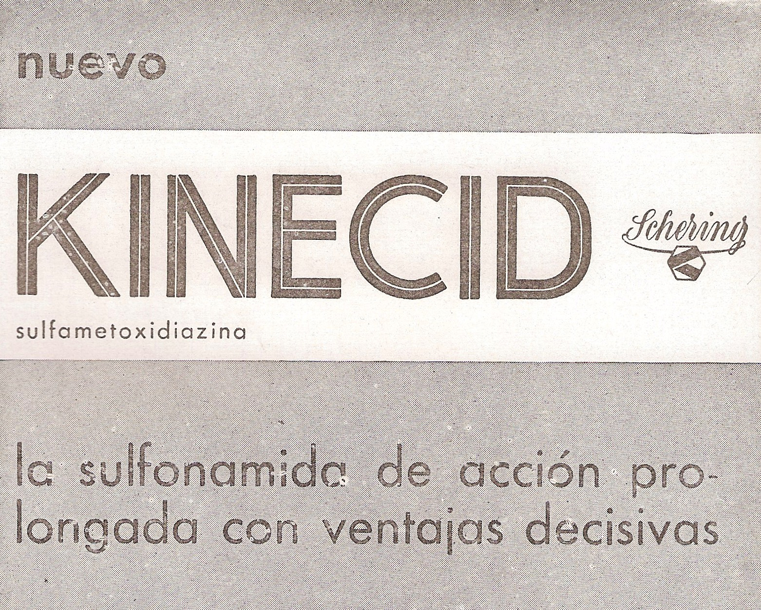 Kinecid. Sulfametoxidiazina. La sulfonamida de acción prolongada con ventajas desicivas. Schering. Archivos de la Facultad de Medicina de Madrid, agosto, 1963.