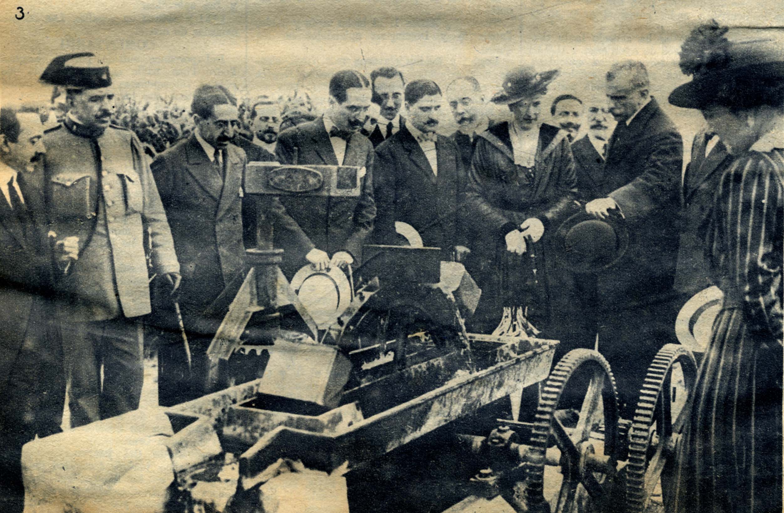 Su Majestad la Reina Victoria viendo funcionar la noria eléctrica que surte de agua al Sanatorio para tuberculosos de Húmera, construido con los fondos recaudados en la Primera Fiesta de la Flor.Le explica el funcionamiento el Dr. Amalio Gimeno.