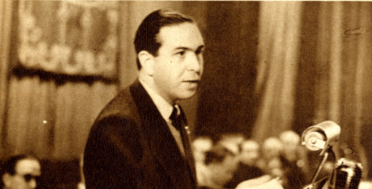 IV Congreso Nacional de Sanidad Municipal celebrado en Madrid en Noviembre de 1947. El profesor Laín Entralgo durante el desarrollo de su conferencia “Lecturas del médico rural”. Consejo General de Colegios Médicos de España, 15, Diciembre 1947