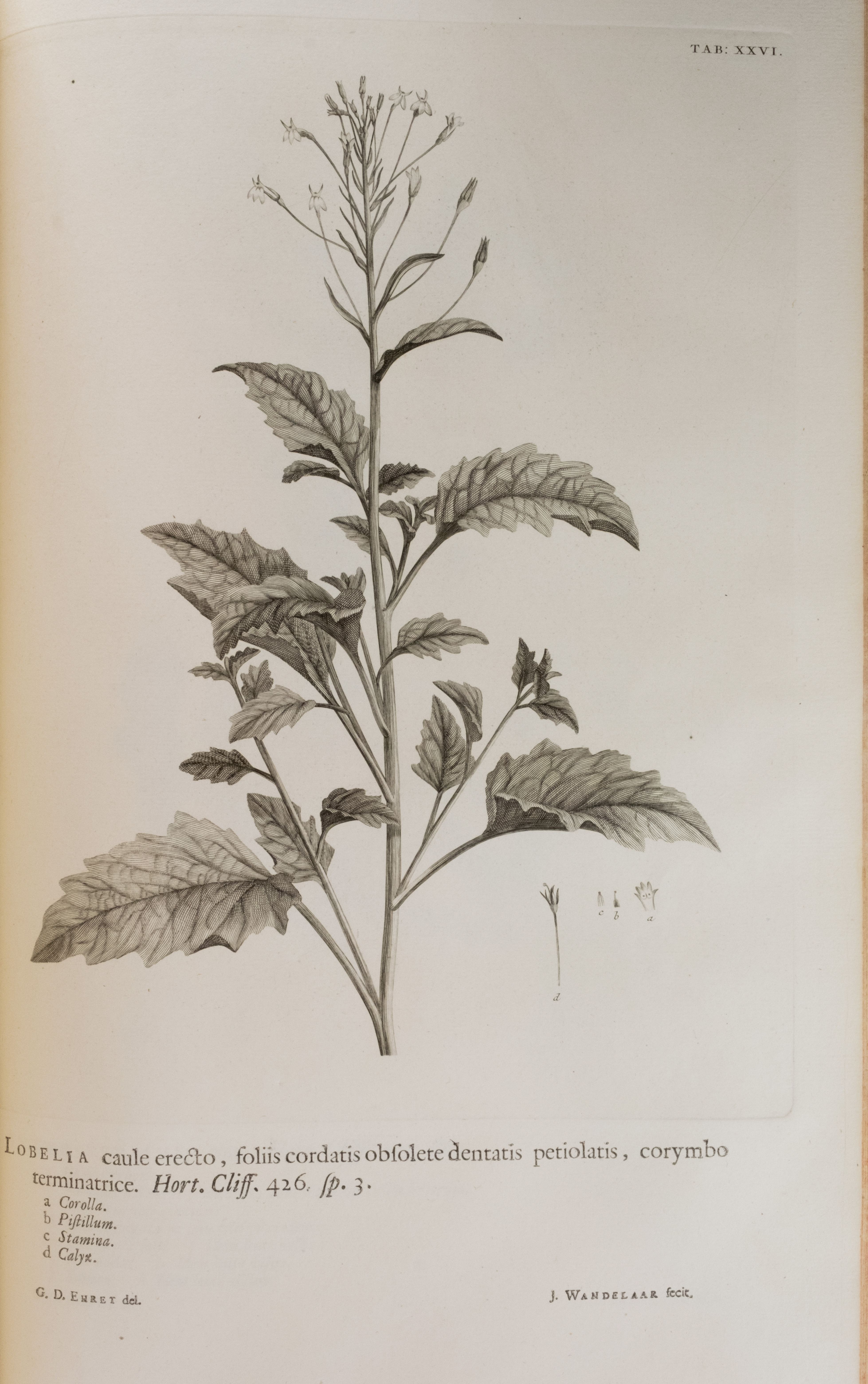 Lobelia caule erecto, foliis cordatis obsolete dentatis petiolatis, corymbo terminatrice.