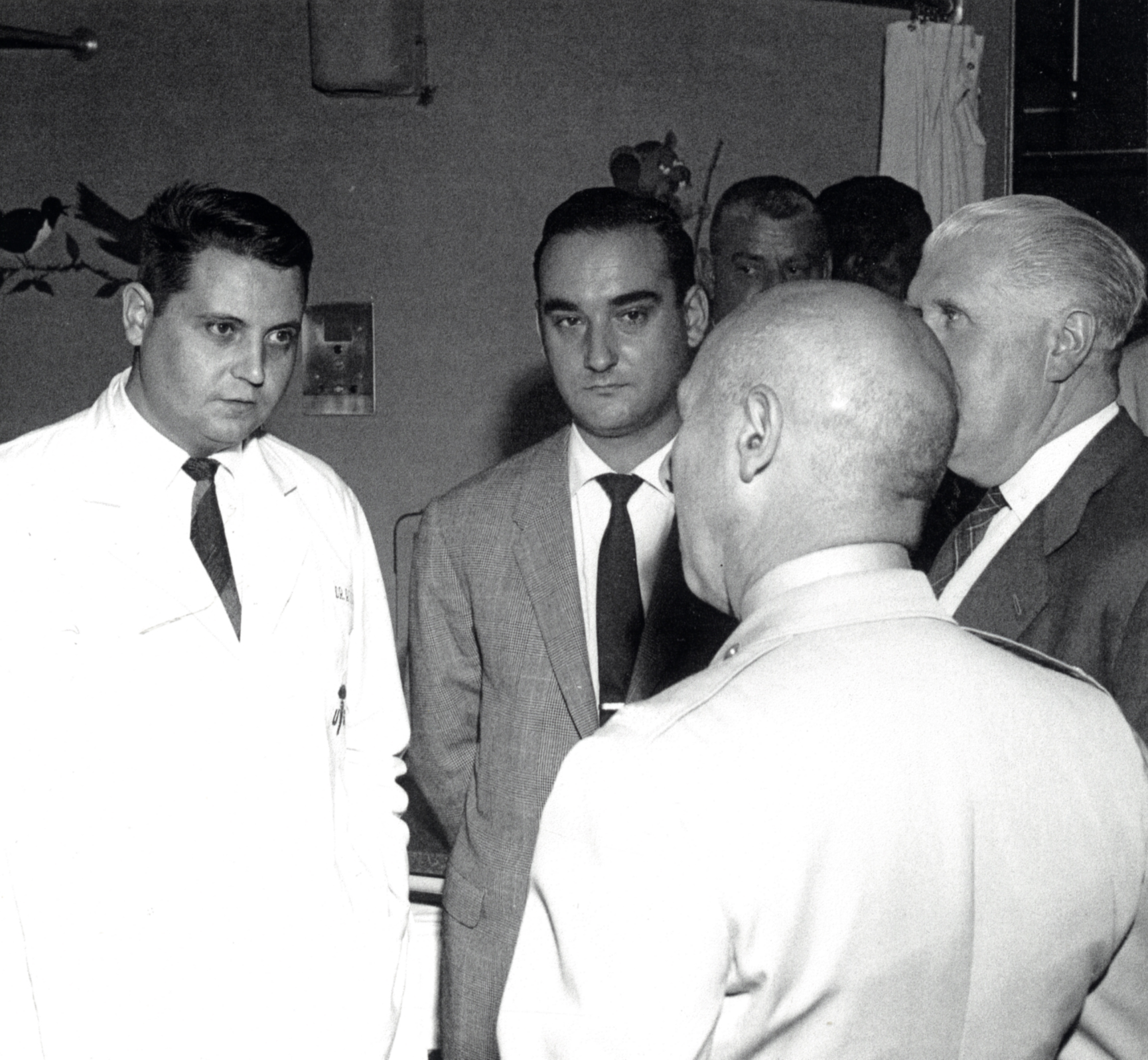 En el Hospital Americano de Torrejón. De izq. a dcha. : Dres. Angel López Rico, Casado de Frías, Jaime Magaz .