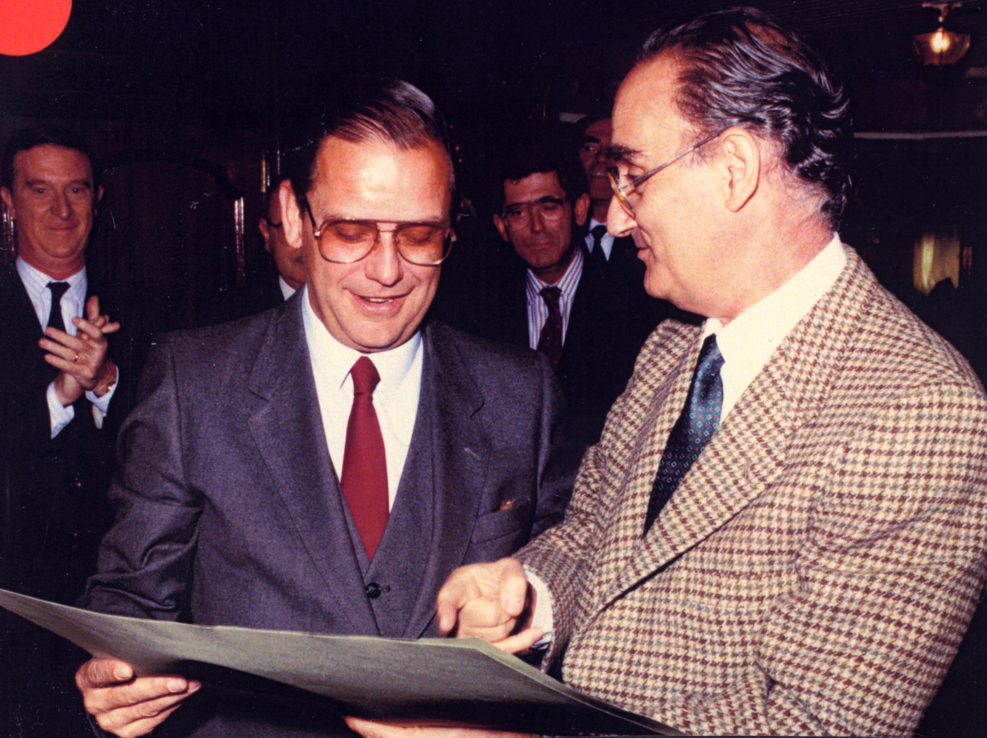 De izq. a dcha. en 1º plano : Dres. Manuel Bueno (Zaragoza) y Casado de Frías. 2º plano de izq. a dcha. : Dres. Prandi (Barcelona), y Manuel Moro (Madrid).