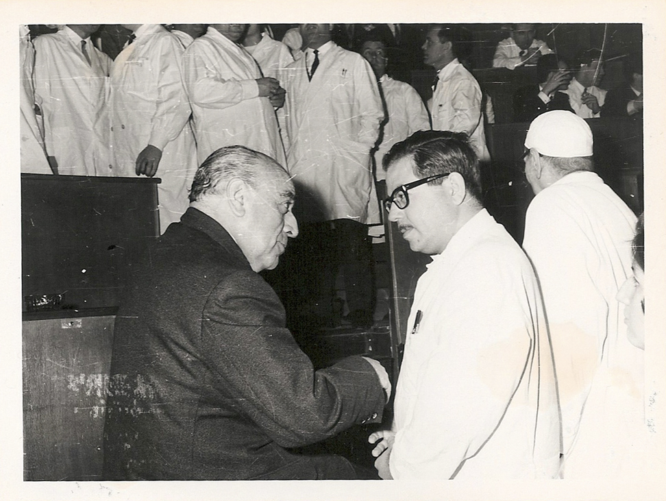 Manuel Díaz Rubio conversando con Horacio Oliva Aldamiz. Acto de Imposición de la Medalla del Trabajo al Prof. Carlos Jiménez Díaz.