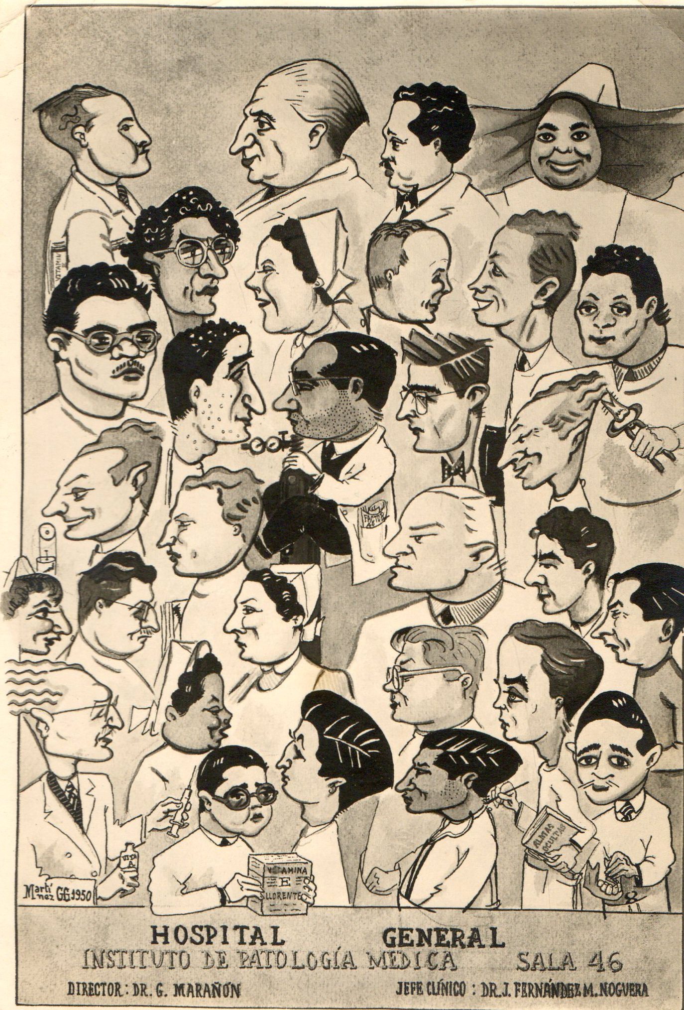 Marañón su escuela. Caricaturas de Gómez Gordo