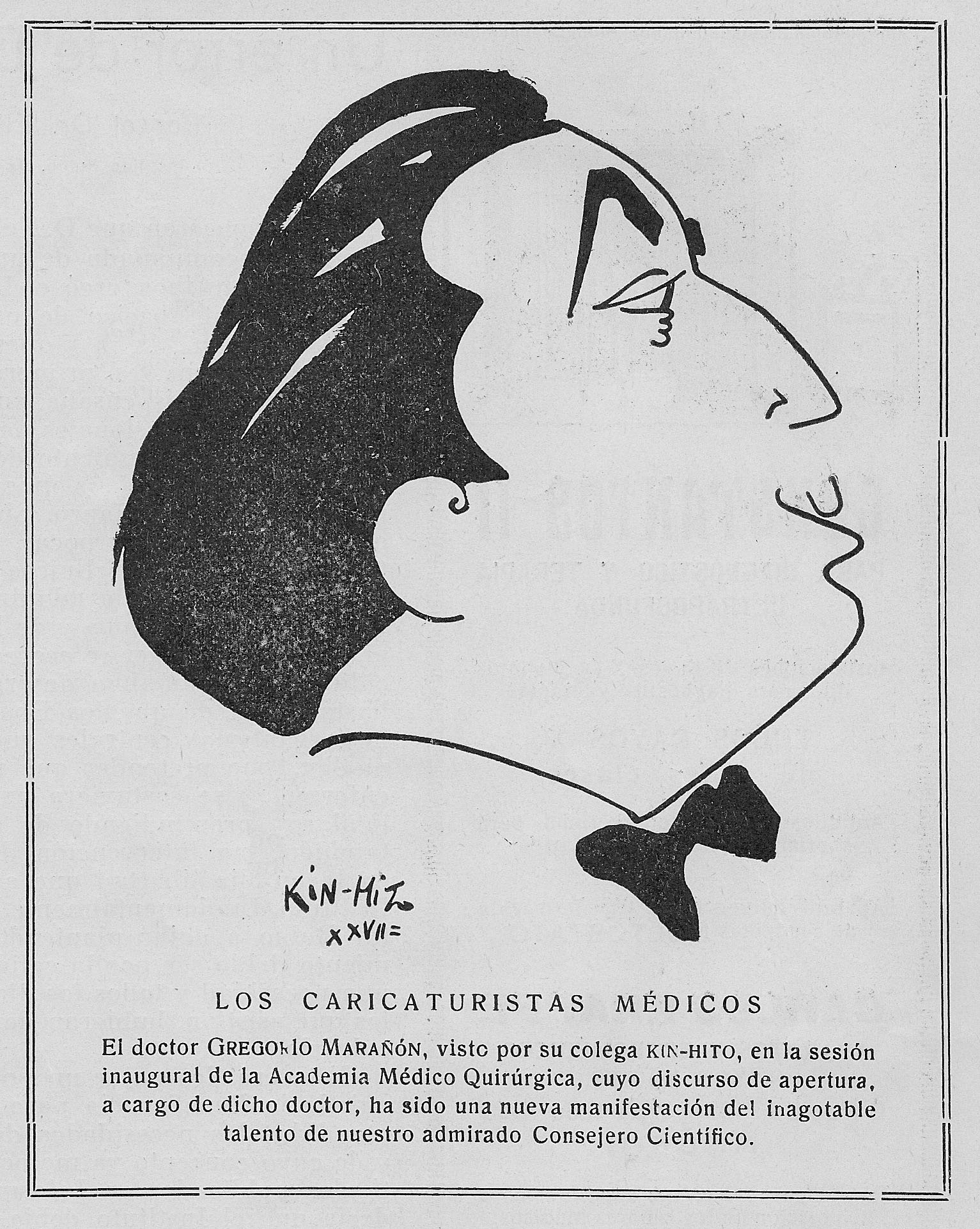 Marañón, Gregorio. Caricatura de KIN-HITO, 1927. Gaceta Médica Española, Noviembre, 1927