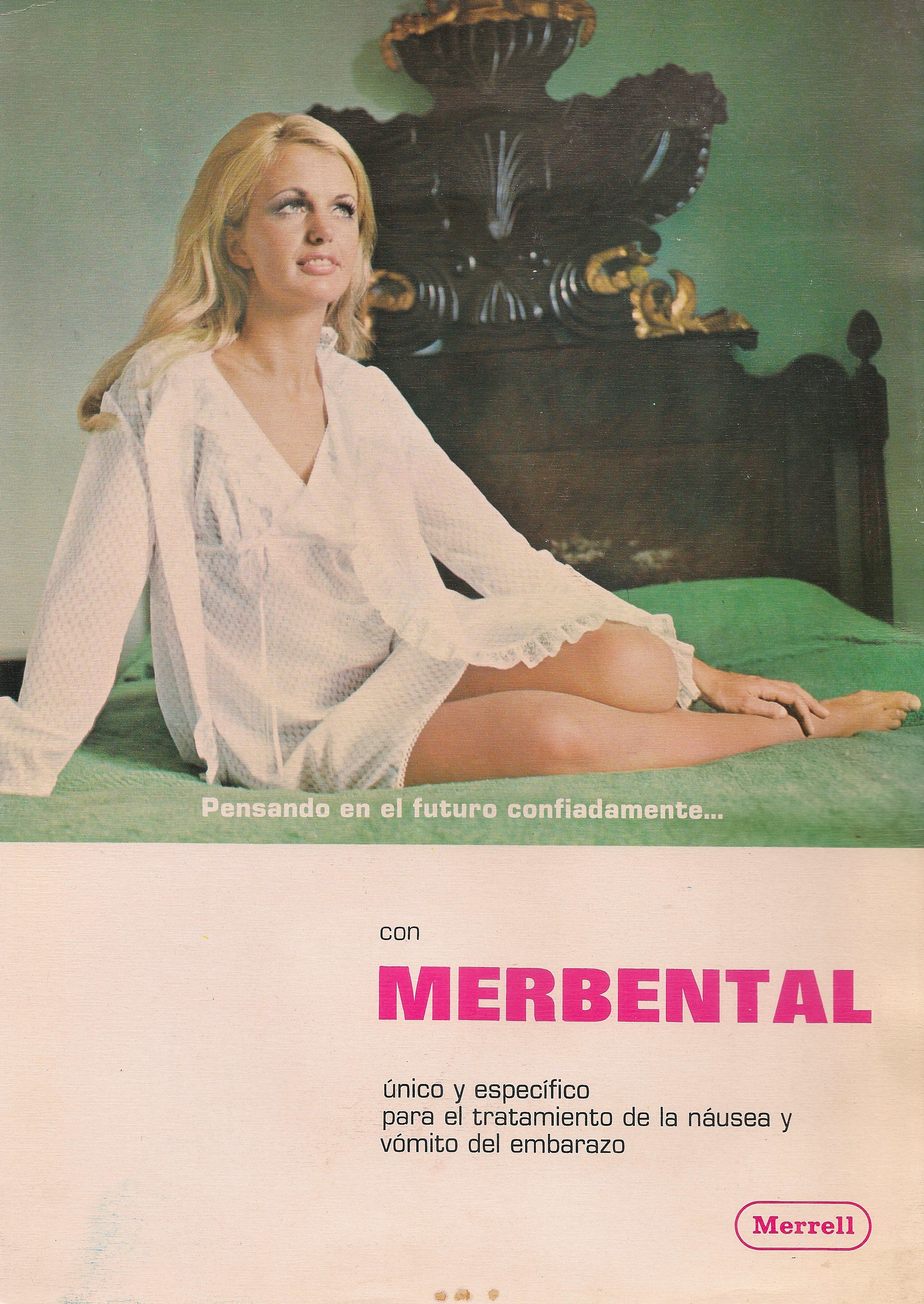 Merbental. Tratamiento específico de la náusea y vómito del embarazo. Anuncio encartable. Merrel. 1970
