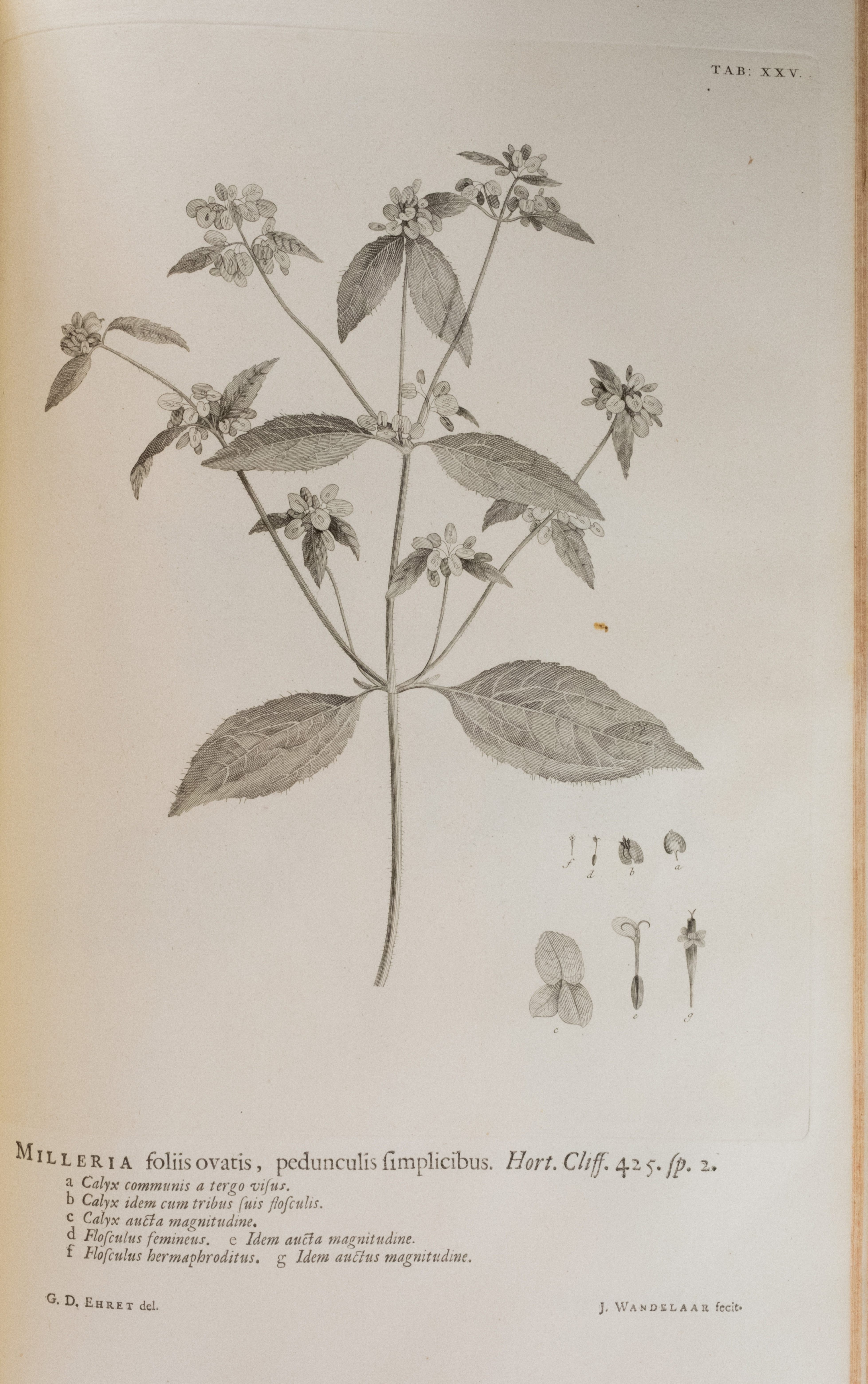 Milleria foliis ovatis, pedunculis fimplicibus. Hort. Cliff. 425. Fp. 2.