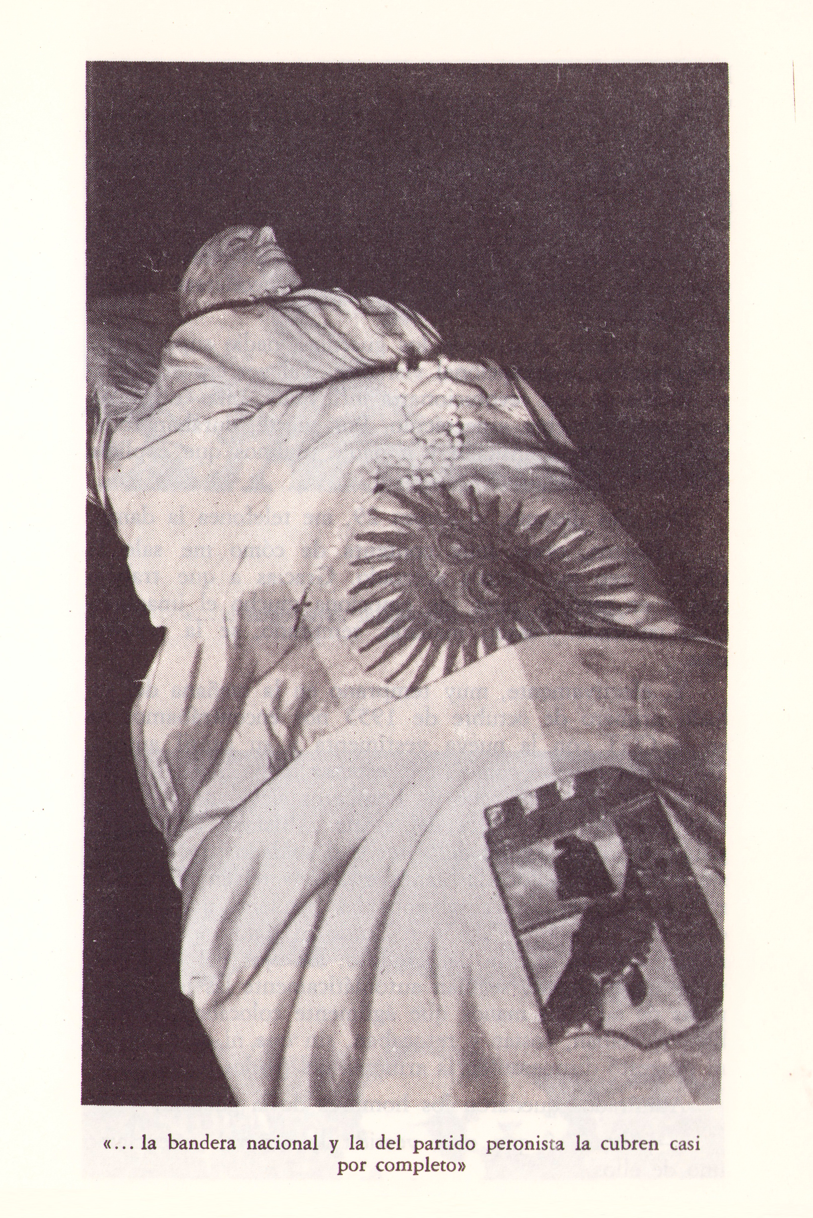 “…la bandera nacional y la del partido peronista la cubren casi por completo”