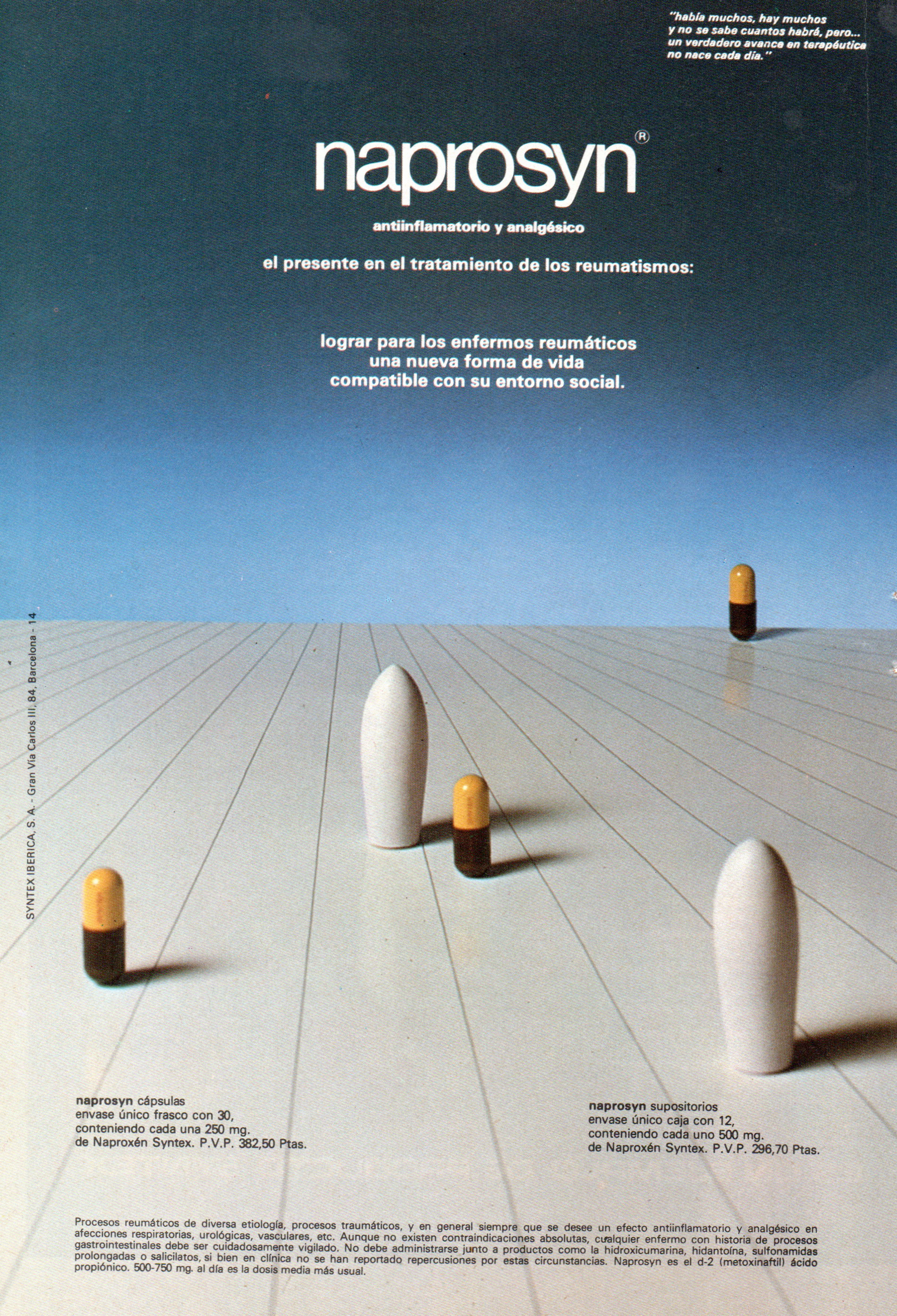 Naprosyn. Antiinflamatorio y analgésico. Laboratorios Syntex. Encarte en Hispalis Médica, marzo 1976.