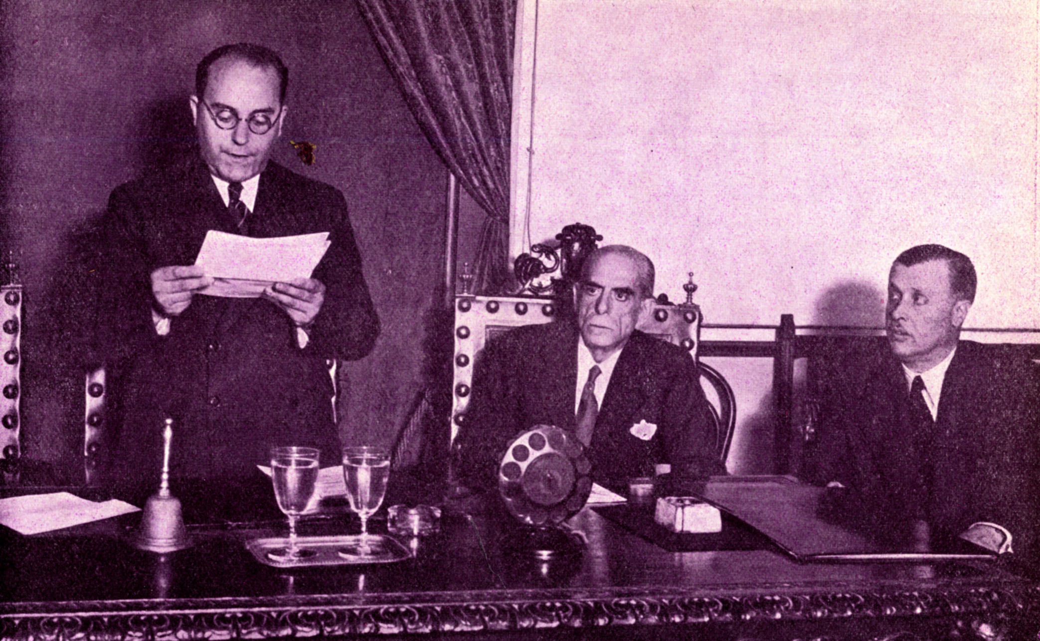 En el Colegio de Médicos de Madrid, el Dr. Enrique Noguera da una conferencia sobre el tema “Posición de los médicos españoles ante el Seguro Social de Enfermedad adoptada libremente en el I Congreso Español Pro-Médico”