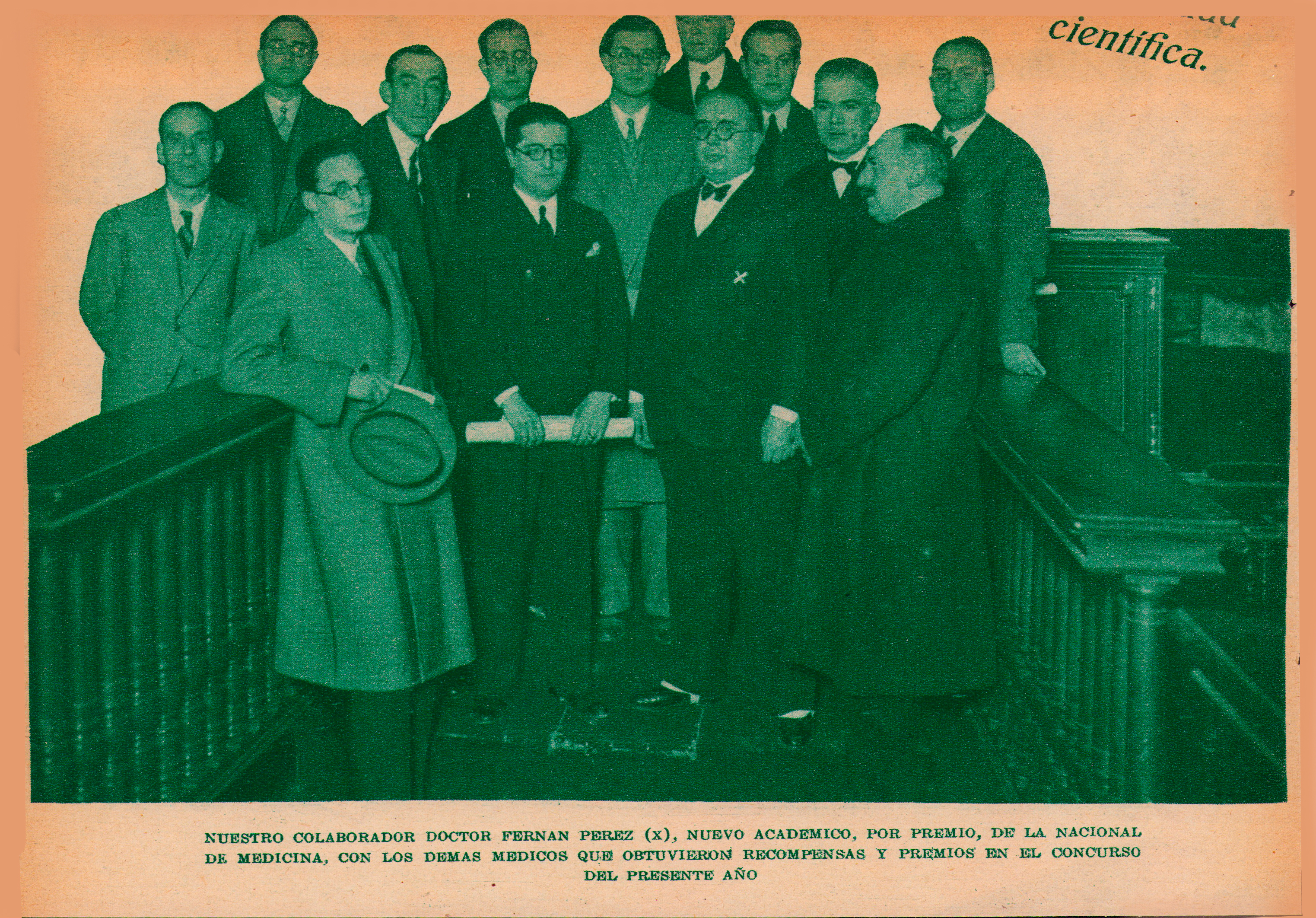 Nuestro colaborador Doctor Fernan Perez (x), nuevo Académico, por premio, de la Nacional de Medicina, con los demas médicos que obtuvieron recompensas y premios en el concurso del presente año.