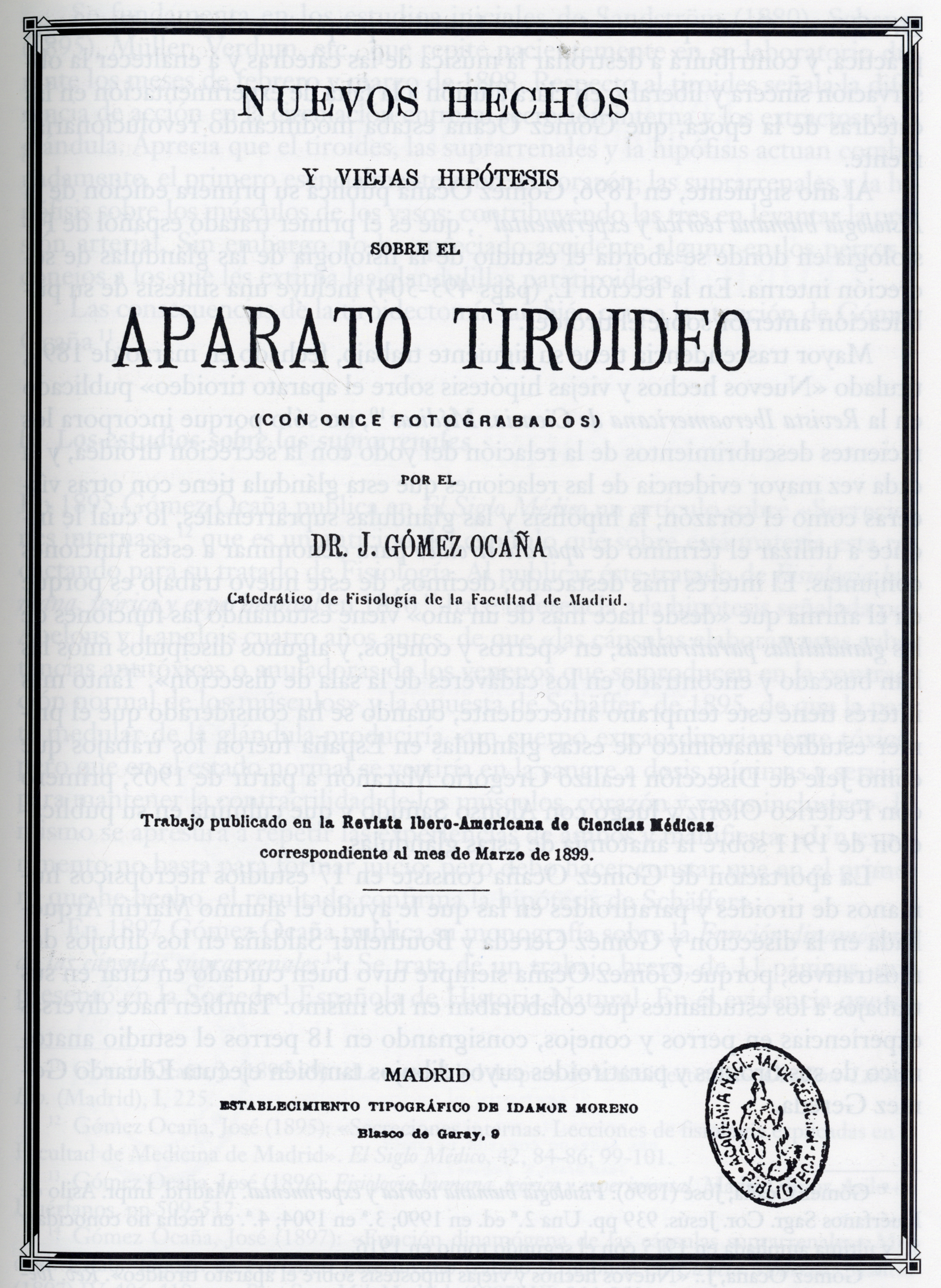 Nuevos hechos y viejas hipótesis sobre el aparato tiroideo. D. J. Gómez Ocaña.