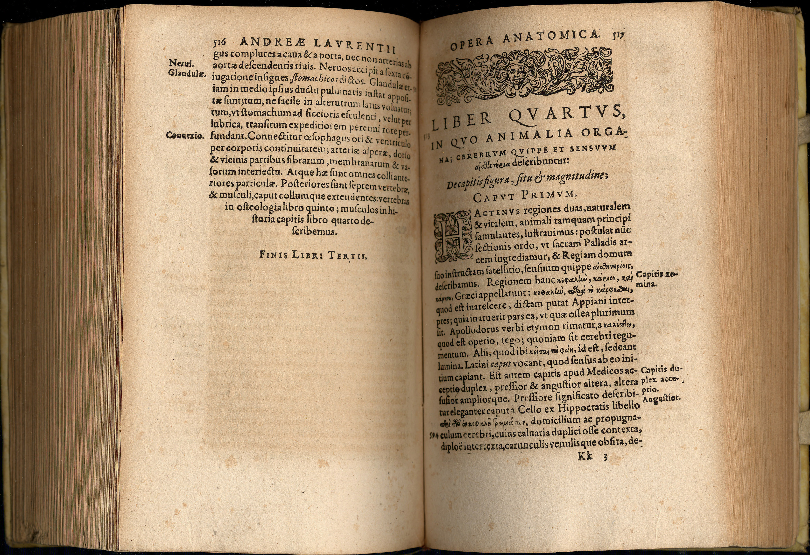 DU LAURENS, André. (Laurentius Dulaureus) – Opera anatómica. – Francofvrti : Impesis Petri Fischeri Bibliopolae Franc., 1595. — [24], 109 p. ; 8º (20 cm). — Perg.