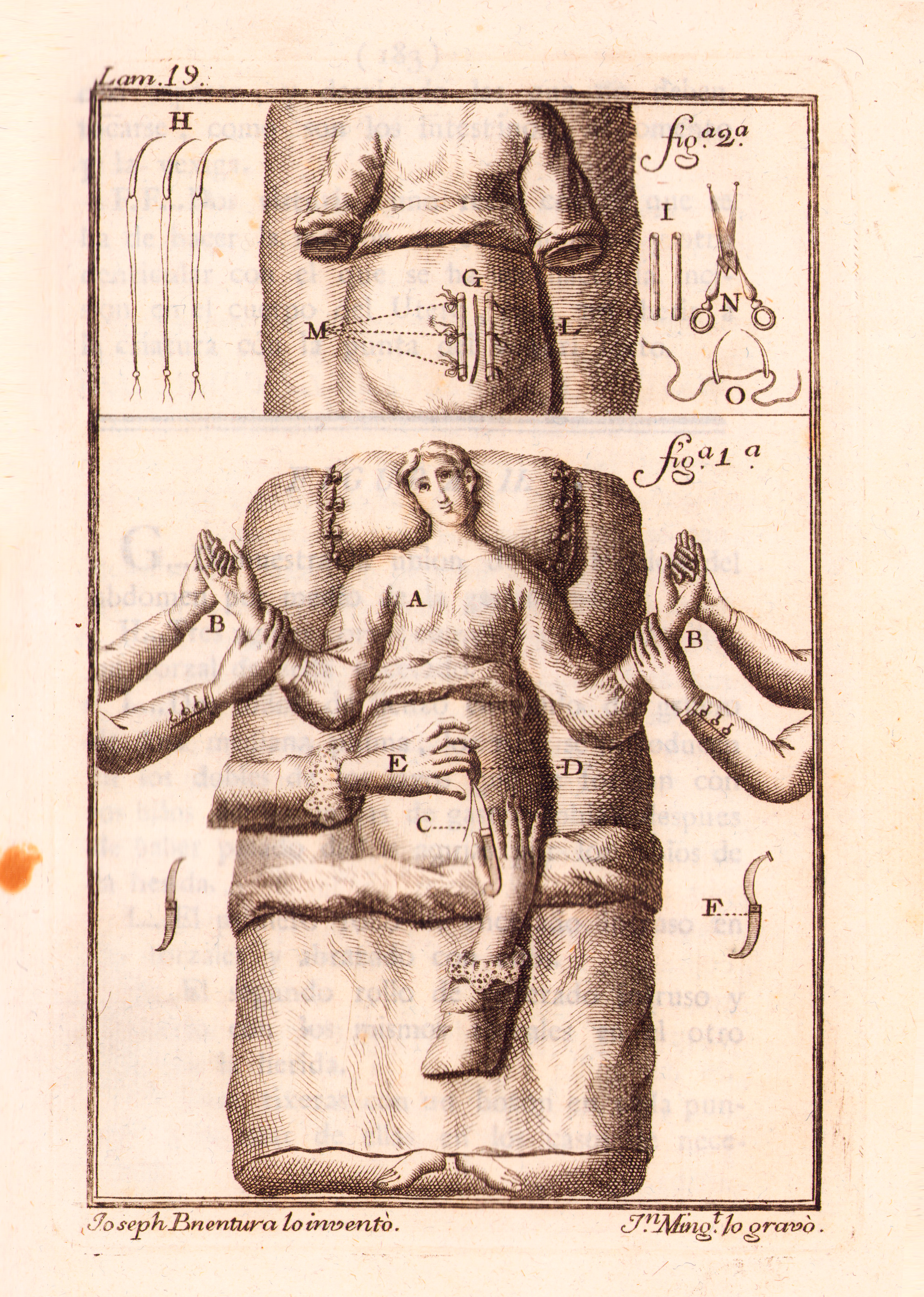 Método de practicar la incisión con el bisturí, y cómo aislar a la paciente.