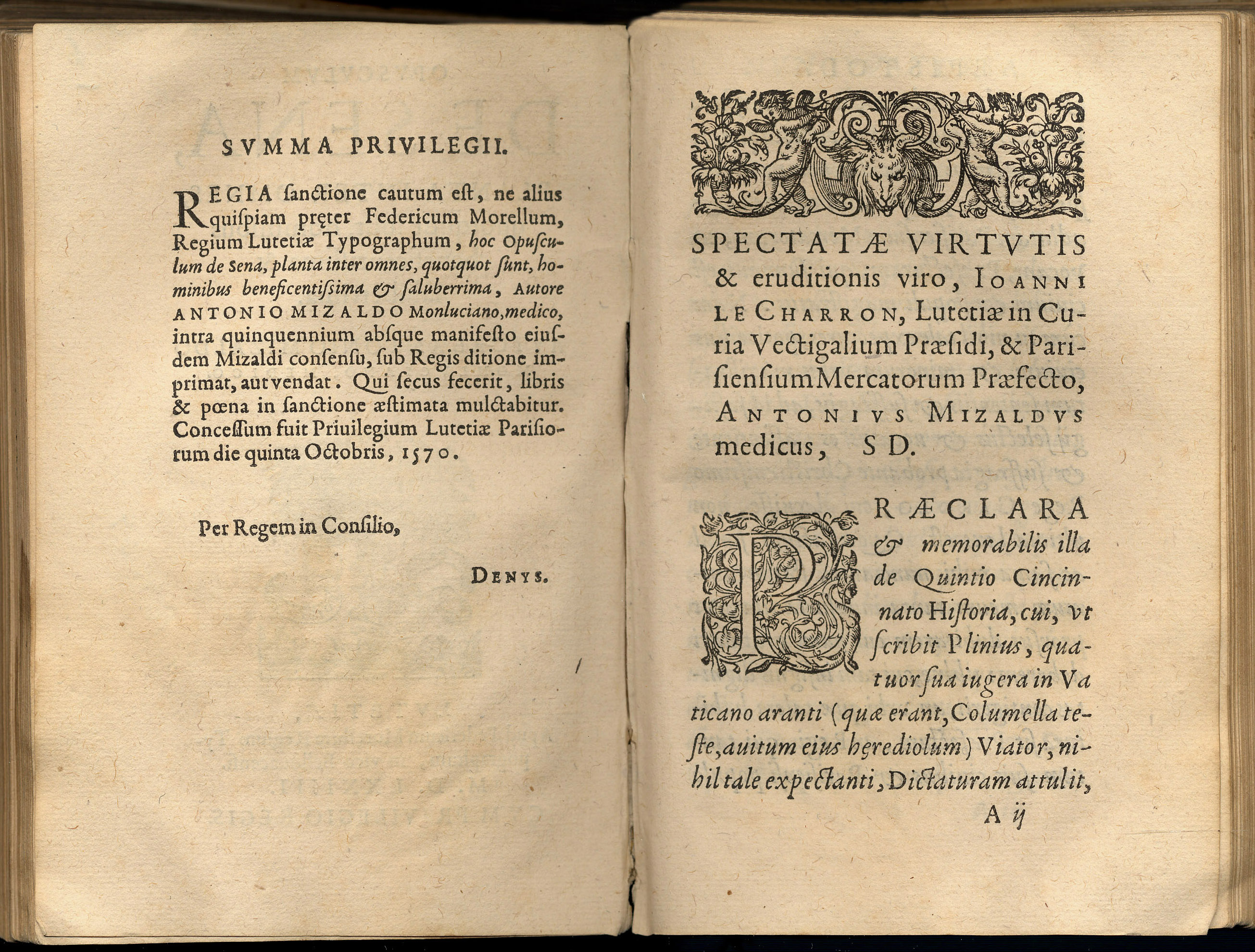 MIZAULD, Antoine (1510-1578). – Opusculum de Sena… – Lutetiae: Apud Federicum Morellum, 1574. – [1], 18, [5] h. ; 8º [17 cm.]. – Perg.