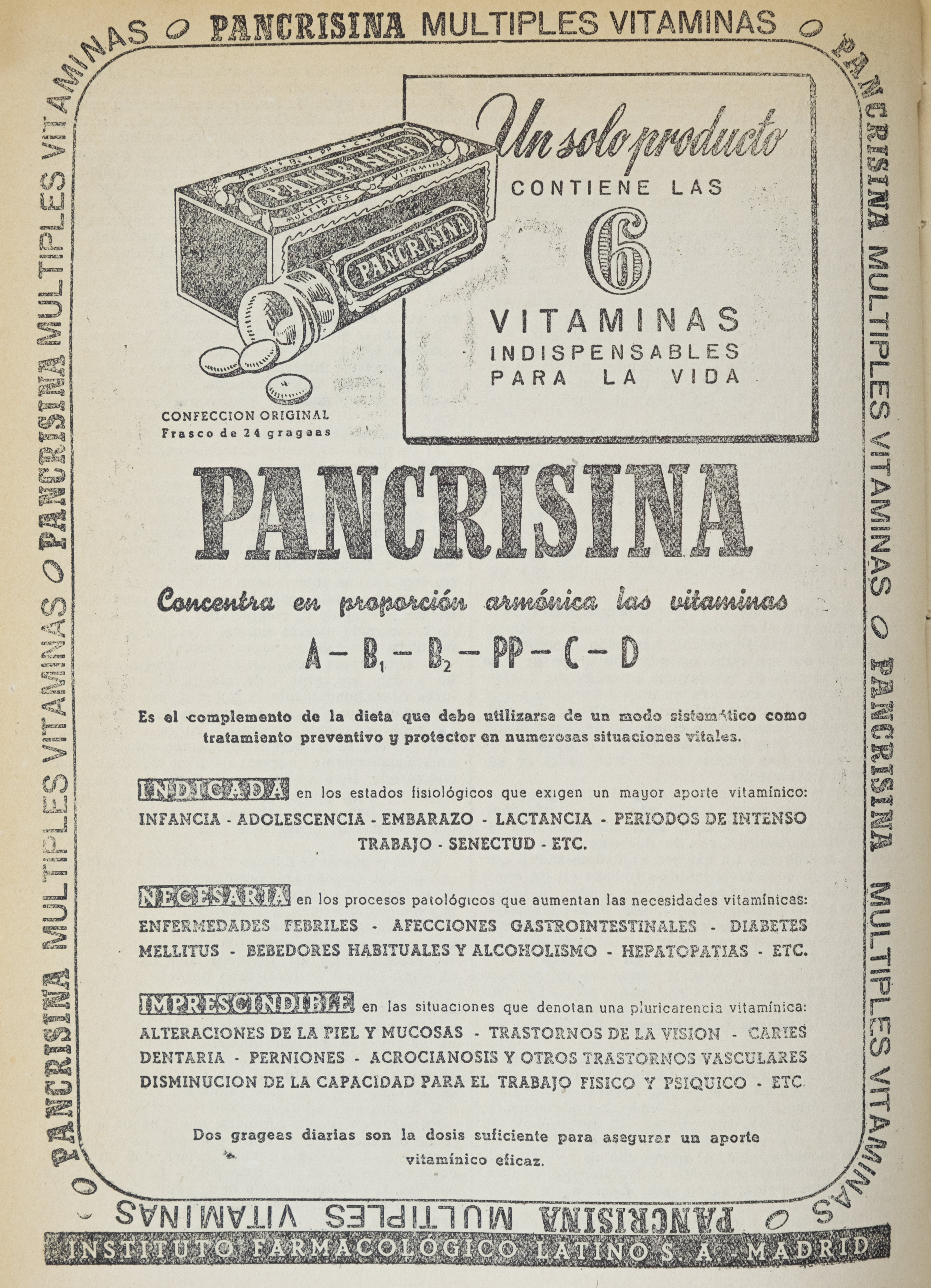 Pancrisina, Medicamenta, 1949