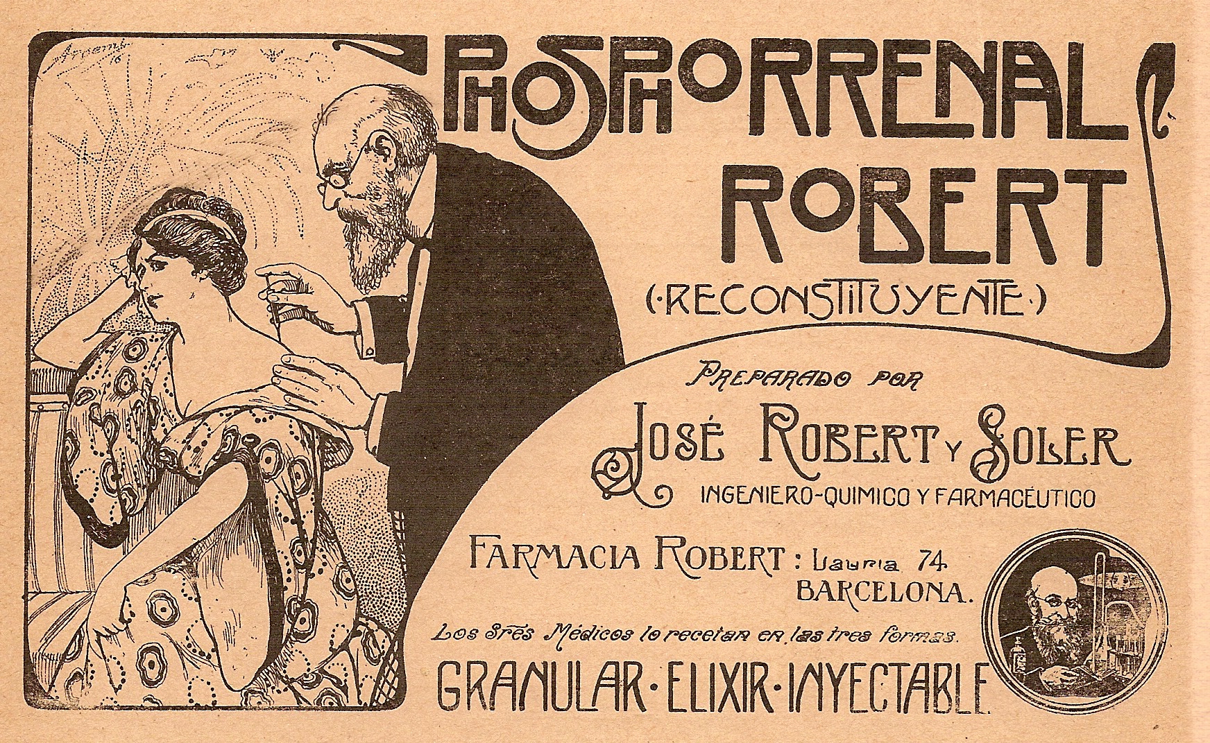 Phosphorrenal Robert. Reconstituyente. Preparado por José Robert y Soler. Barcelona. Publicidad frecuente en revistas. 1918.