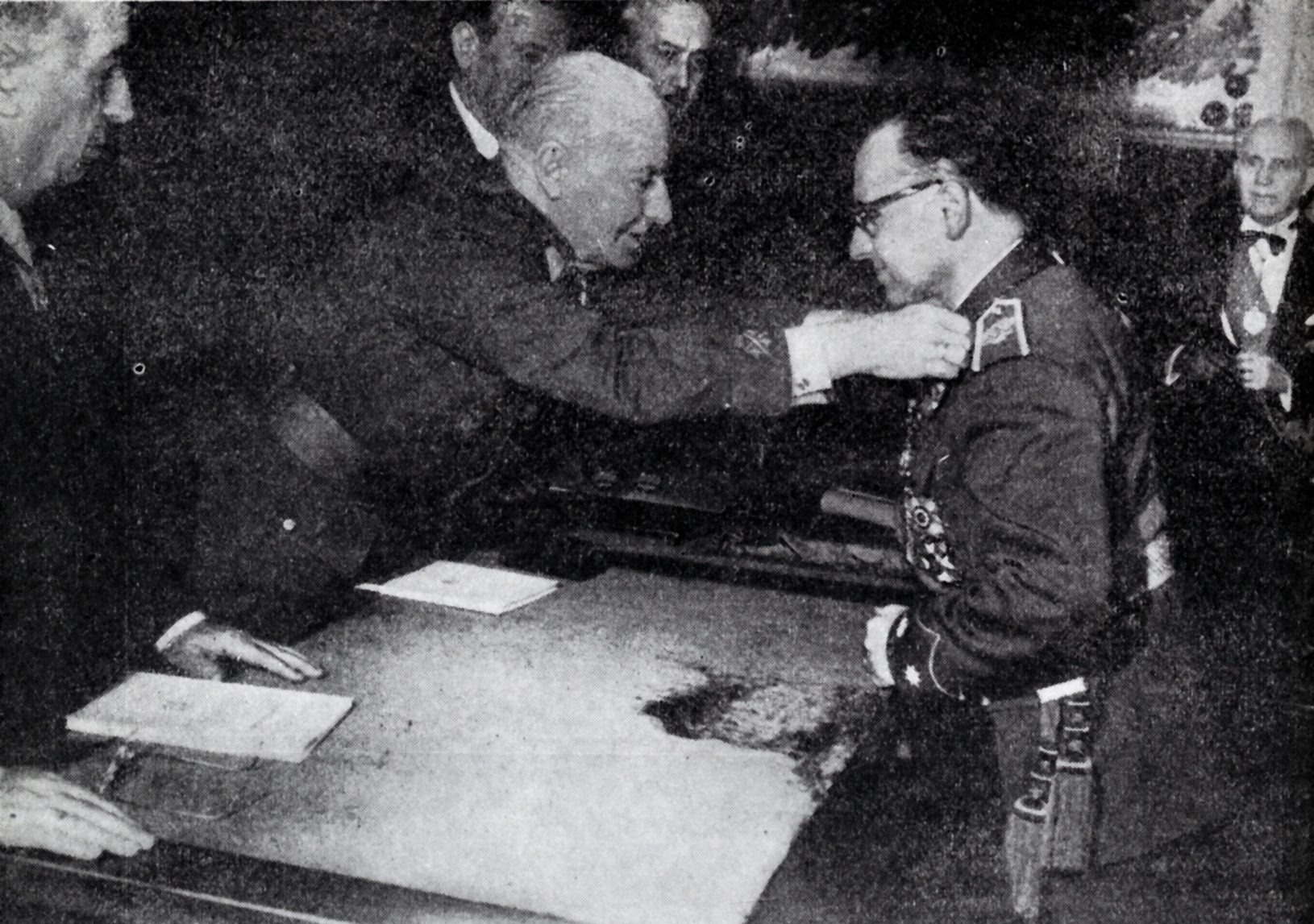 El Ministro del Ejército, Excmo. Sr. D. Pablo Martín Alonso, imponiendo la Medalla académica al Prof. Gonzalo Piédrola Gil el día de su recepción en la Academia Nacional de Medicina como Académico de Número.